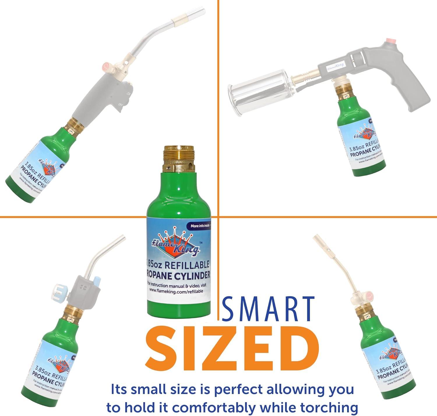 REDUCE WASTE – Join the eco-revolution! Keep disposable propane tanks out of the environment by using the Flame King 3.85 oz refillable cylinders