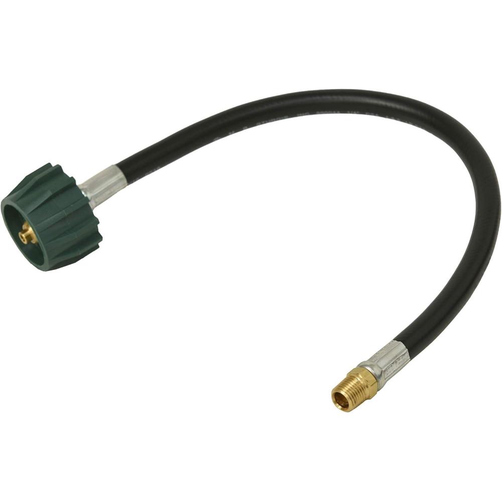 Flame King's 18 inch Pigtail Propane Hose Connector is designed to connect a propane cylinder to an RV or trailer propane regulator. It has an ACME nut x 1/4″ pipe thread. It is rated for 200, 000 BTUs per hour. Safety features include thermal protection in case of fire and excess flow protection in case of broken gas line. You can use the pigtail hose with a 20 pounds or 30 pounds refillable propane tank and connect it to a regulator or 4-Port Brass Tee. It can also be used to connect to an installed 4-Port Tee as an auxiliary propane supply.