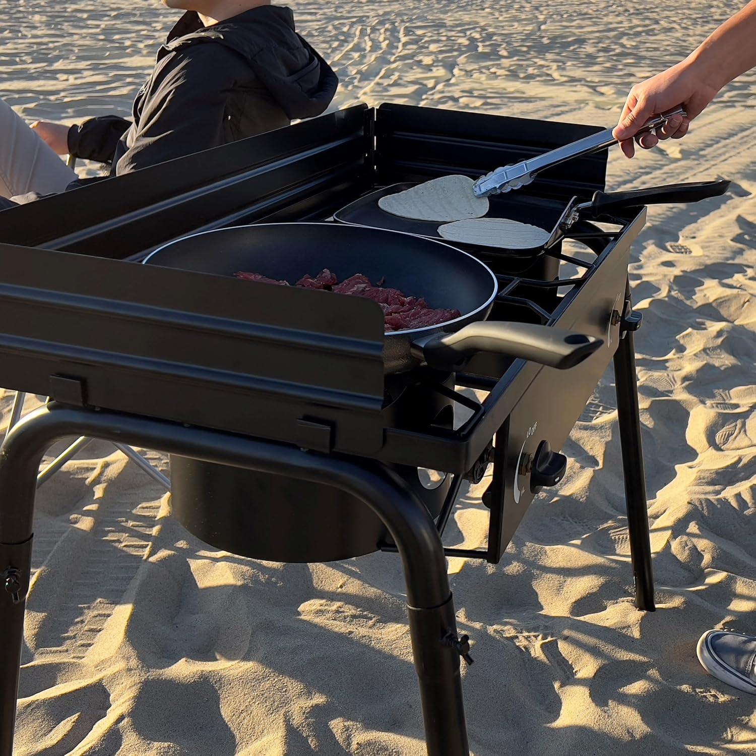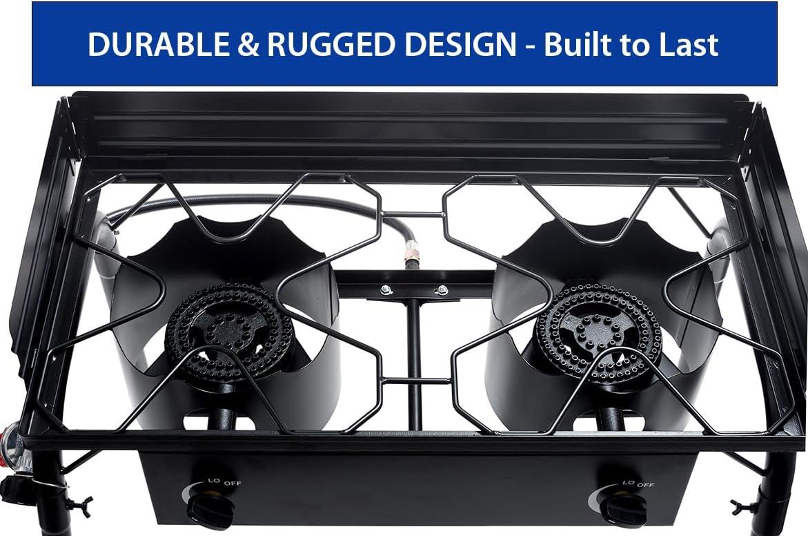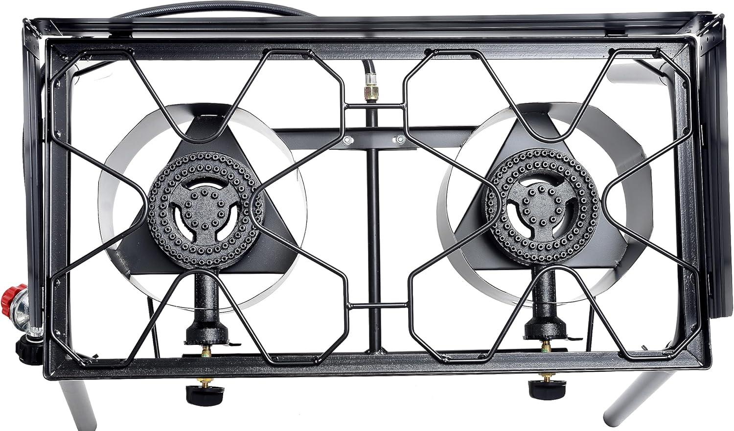 HEAVY DUTY with POWERFUL HEAT OUTPUT of 100,000 BTU each burner – these 2 burners will give you the power to cook any dish you want; perfect for turkey frying, home brewing, maple syrup preps, and cajun cooking