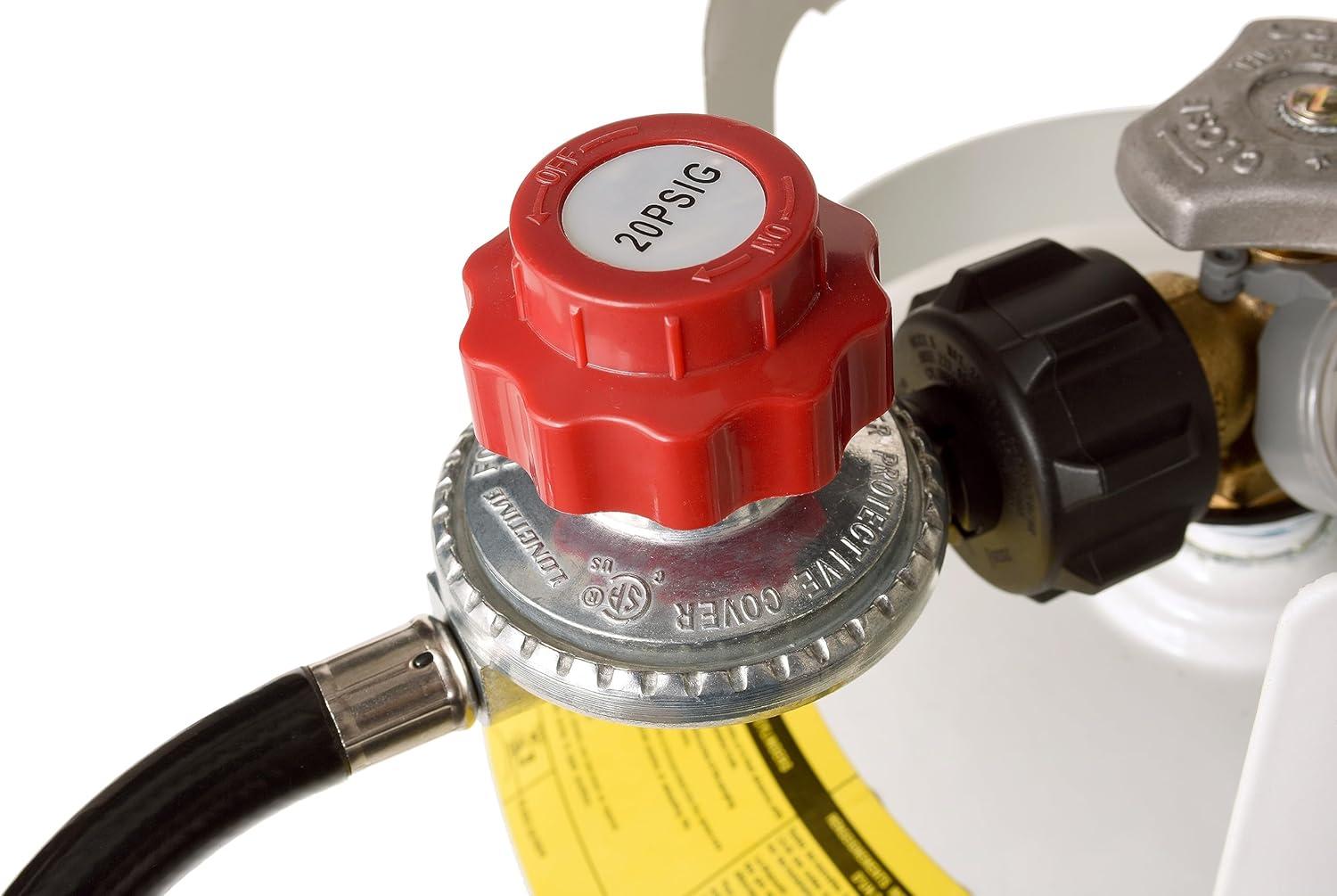 REMOVABLE/ADJUSTABLE LEGS for easy storage and portability, and can be set up on uneven ground; 0-20 PSI Regulator and 4.5-FT hose included for use with a BBQ propane tank (QCC1 Type-1 Valve)
