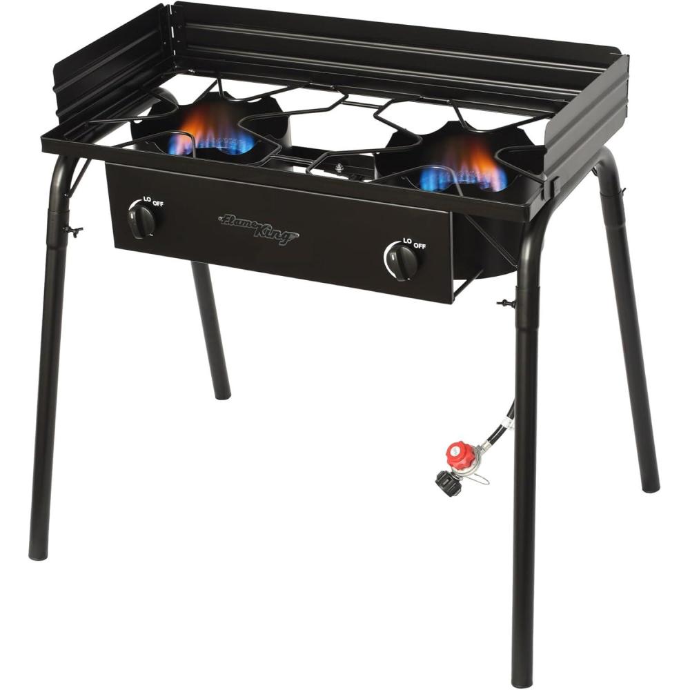 imageFlame King 200000 BTU Propane Burner Gas Stove Heavy Duty Turkey FryerCamp Cooker Portable with Stand Great for Outdoor Cooking Home Brewing ampamp CanningDouble Burner 200K BTU