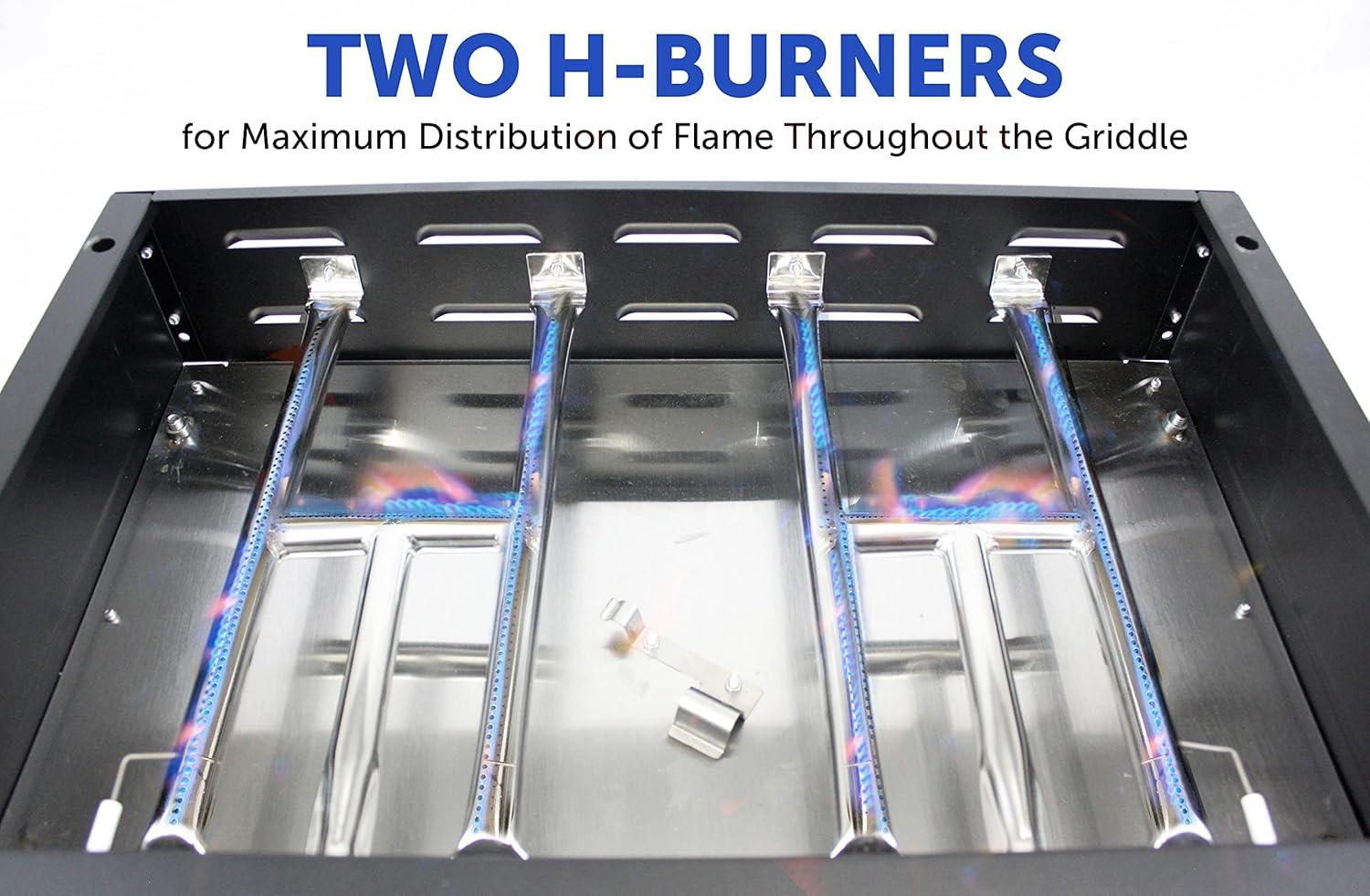 POWERFUL “H” BURNERS: Powered by 2 “H” style burners for even heat distribution and even cooking. Both burners have built-in igniters and flame can be controlled independently, allowing you to cook food at different temperatures