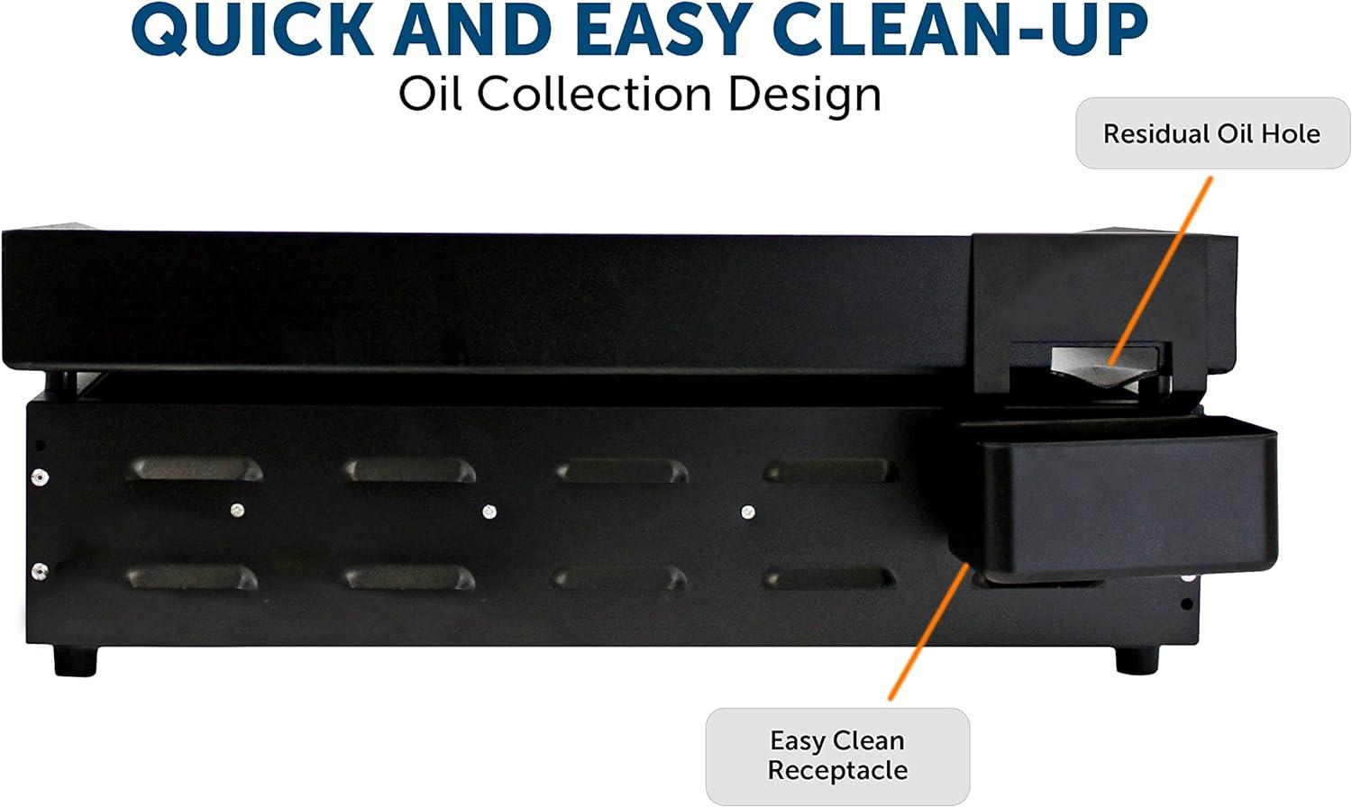 QUICK & EASY CLEAN-UP: Great Oil Collection design with residual oil hole and a grease cup that is detachable for washing