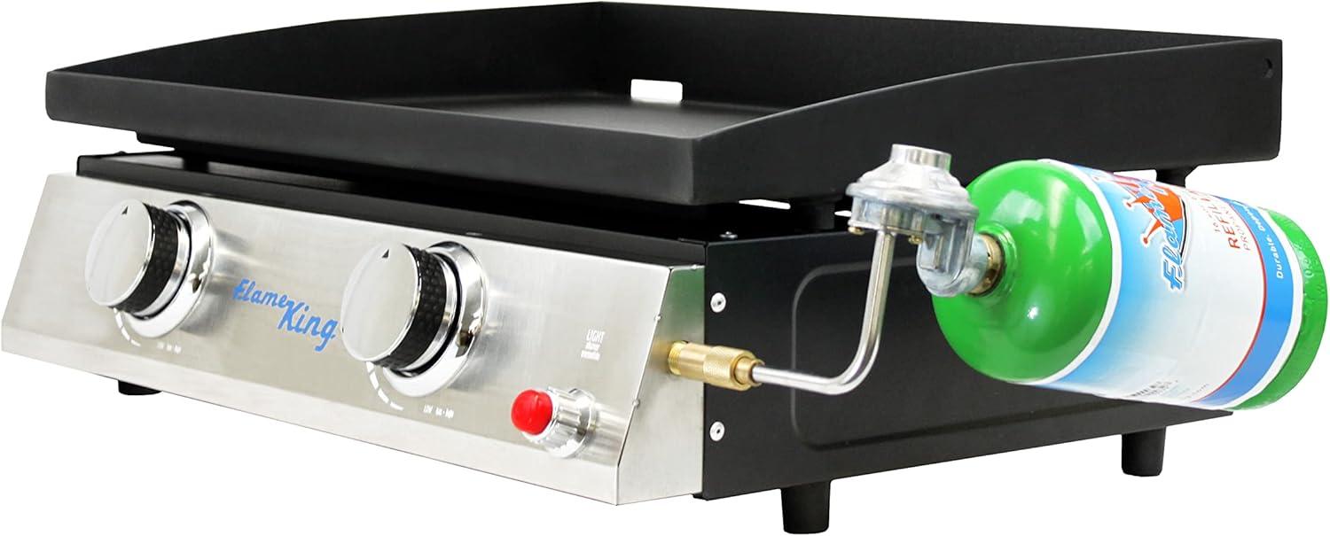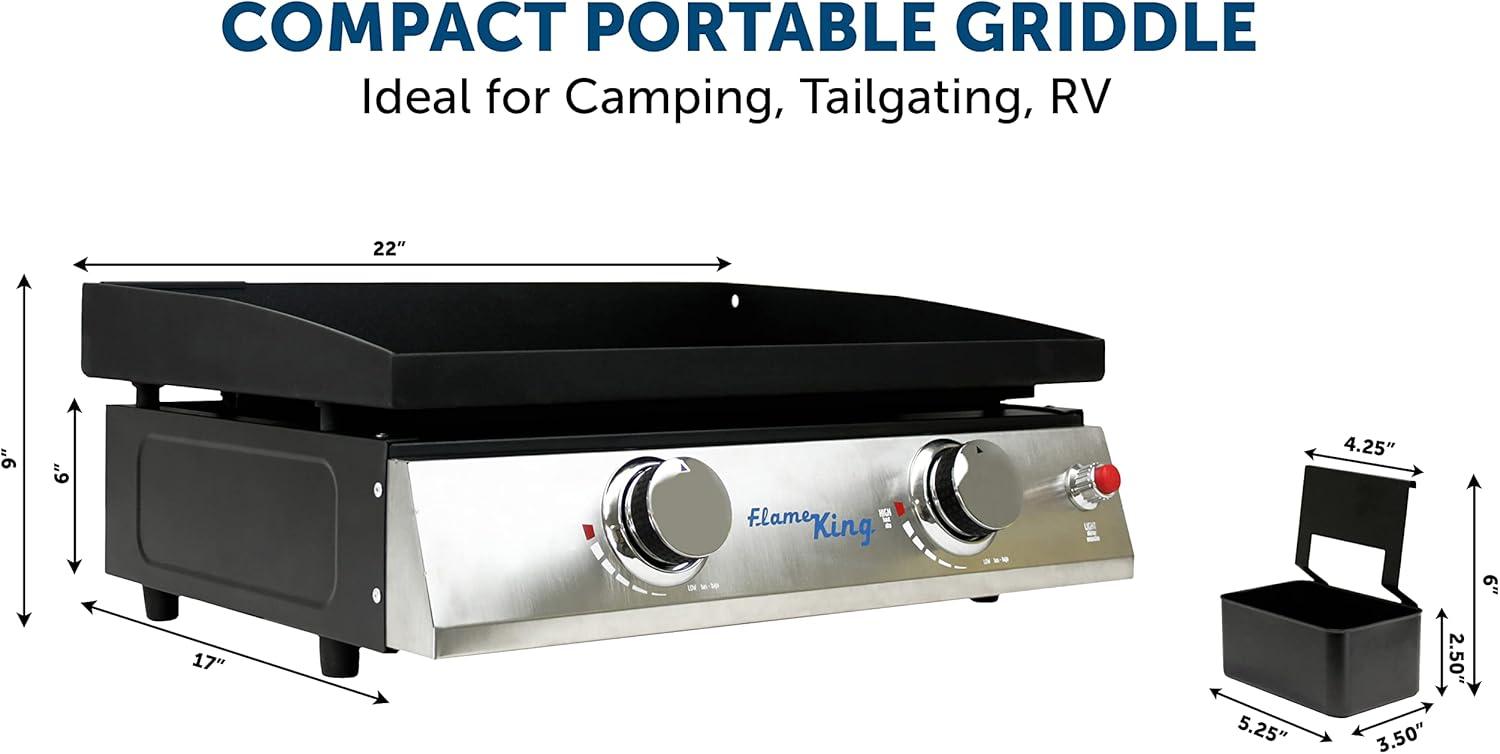 Flame King 22-inch Double Burner Flat Top Griddle for Outdoor BBQ Grill, Portable Propane Gas Griddle for Camping and Tailgating