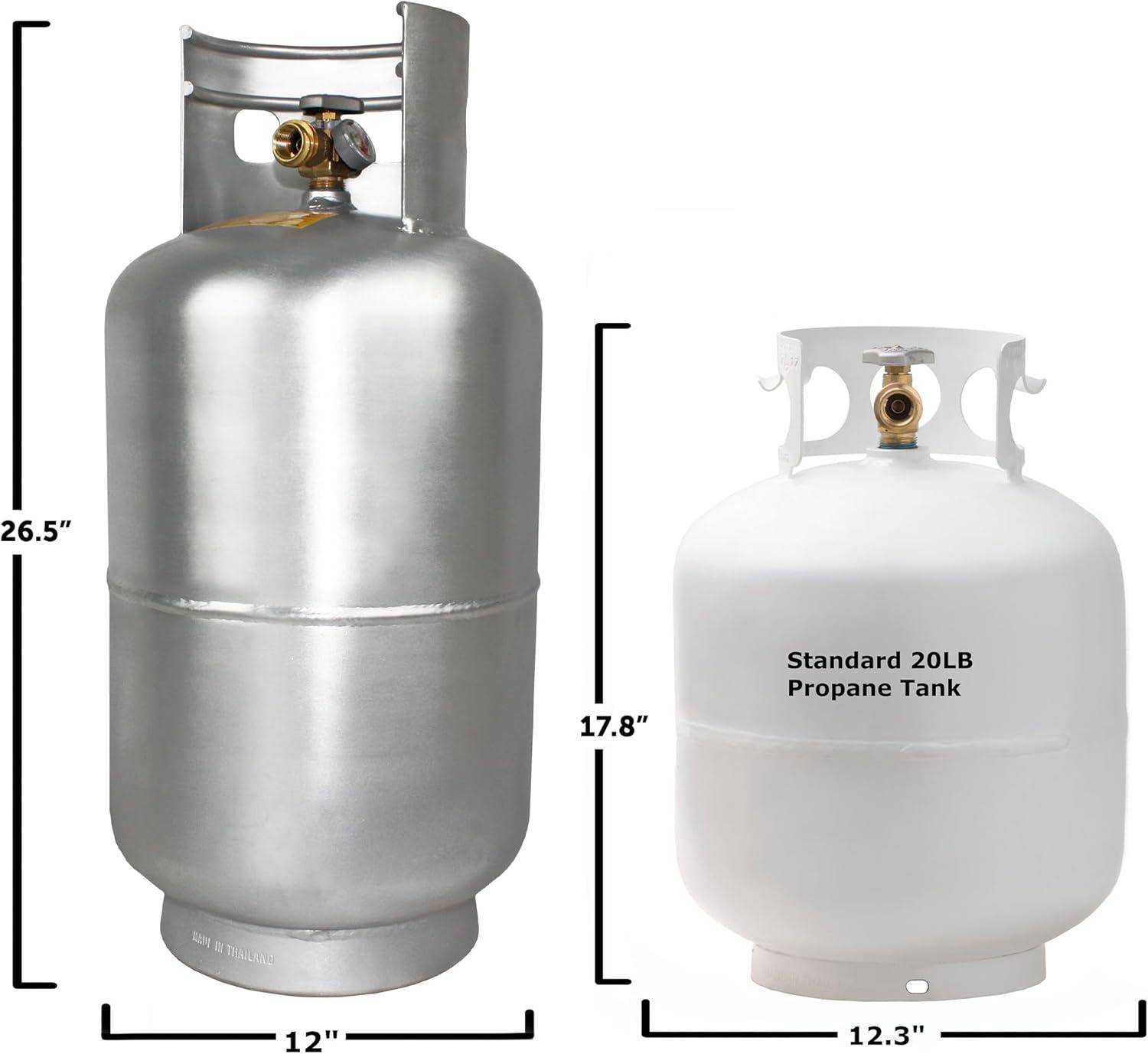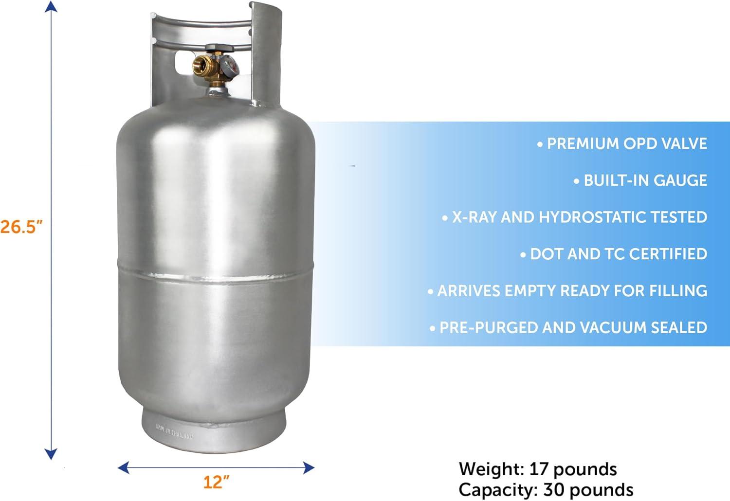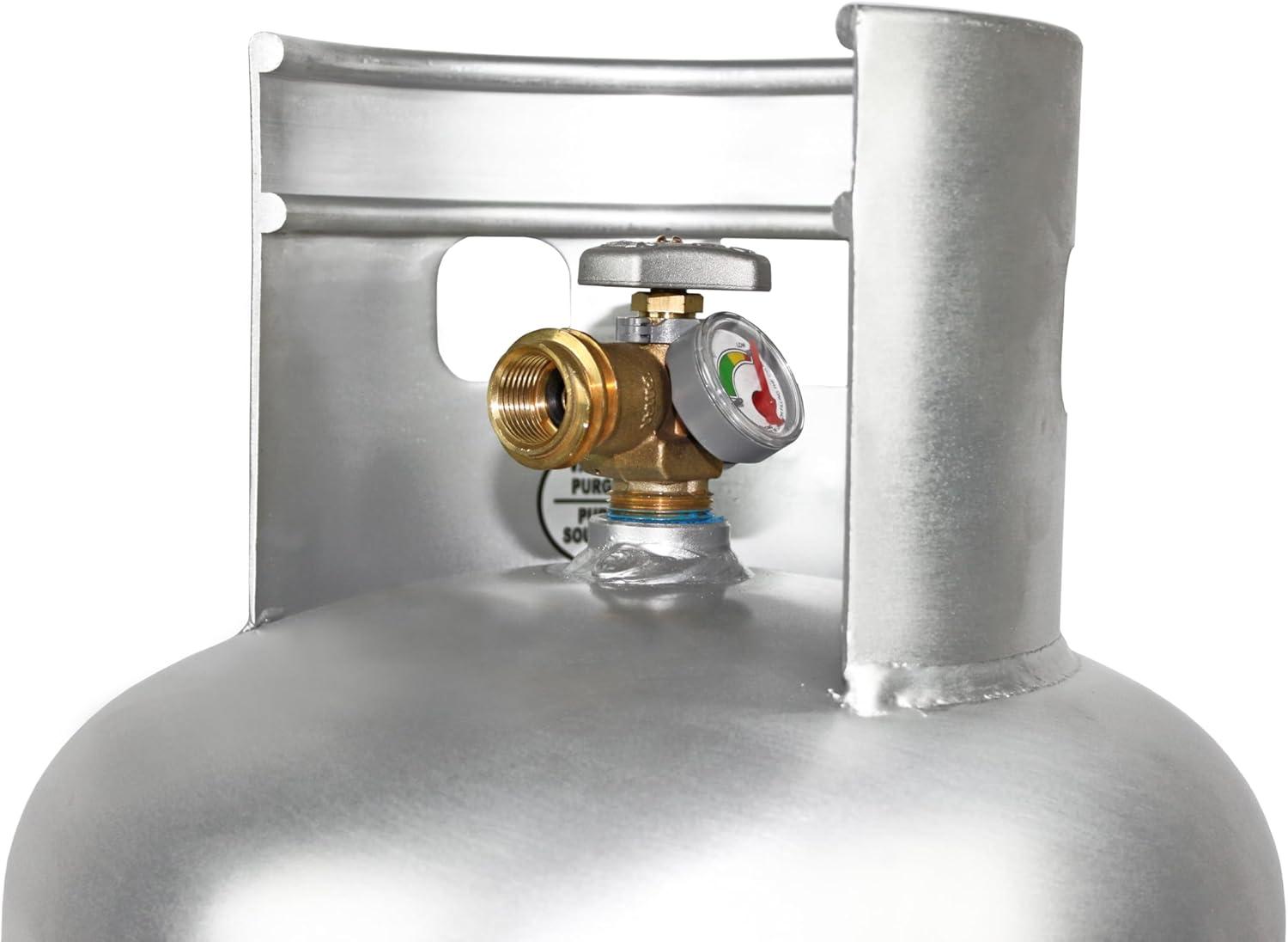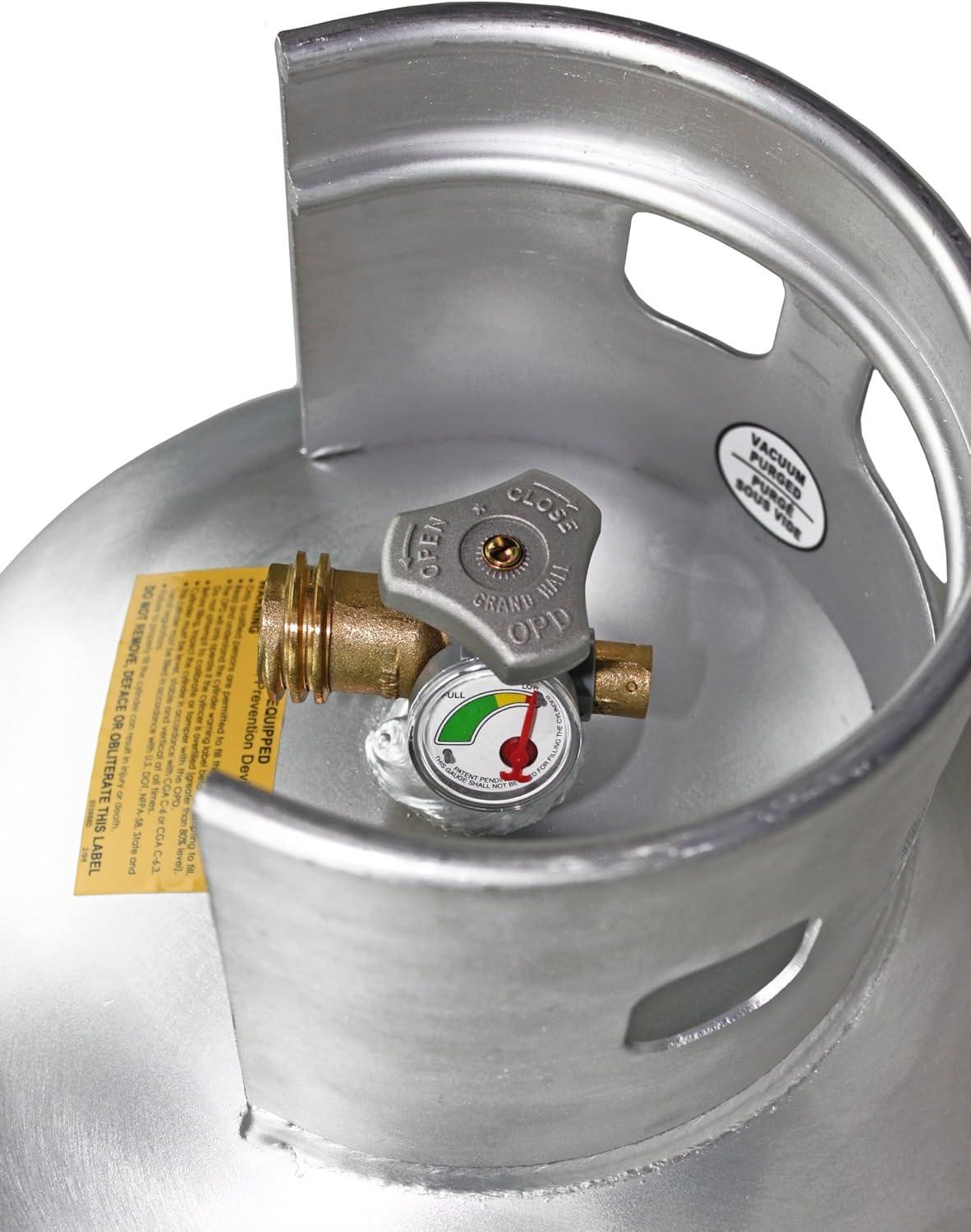 EMPTY TANK: Pre-purged vacuum ready for filling with propane; built from high-grade aluminum construction with long-lasting durability