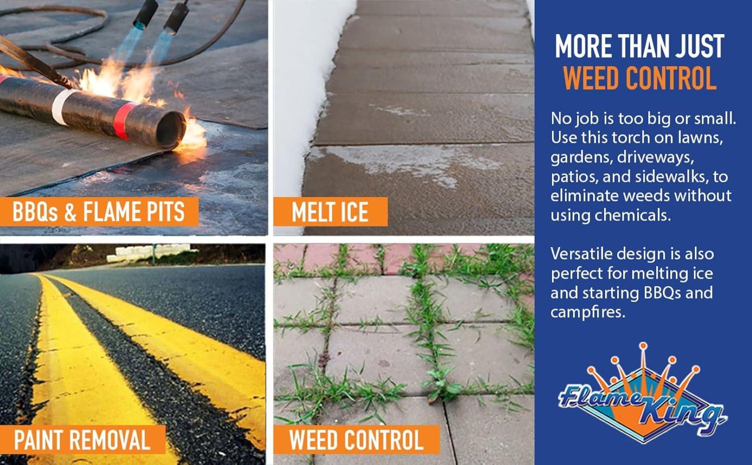 MULTI-PURPOSE PROPANE TORCH: More than just a WEED BURNER; it is also great for melting snow and ice, removing parking lot markings and paint, thawing frozen pipes and equipment, melting tar and asphalt, repairing roof and various woodworking projects