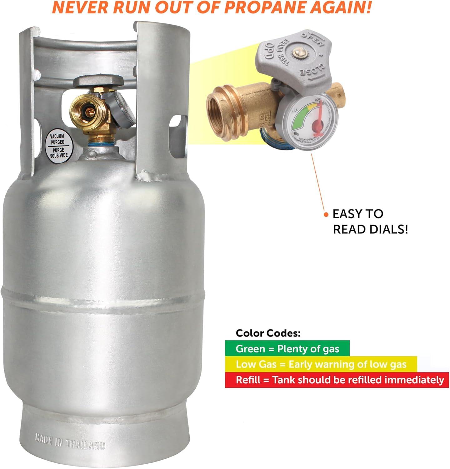 LIGHTWEIGHT FOR EASIER LIFTING – More propane gas with a lighter tank for your outdoor activities; great for Marine Applications, Grills and BBQs, Camping, Fishing, & Outdoor Activities; also works with RVs or trailers, propane tank attachable heaters, and other accessories.