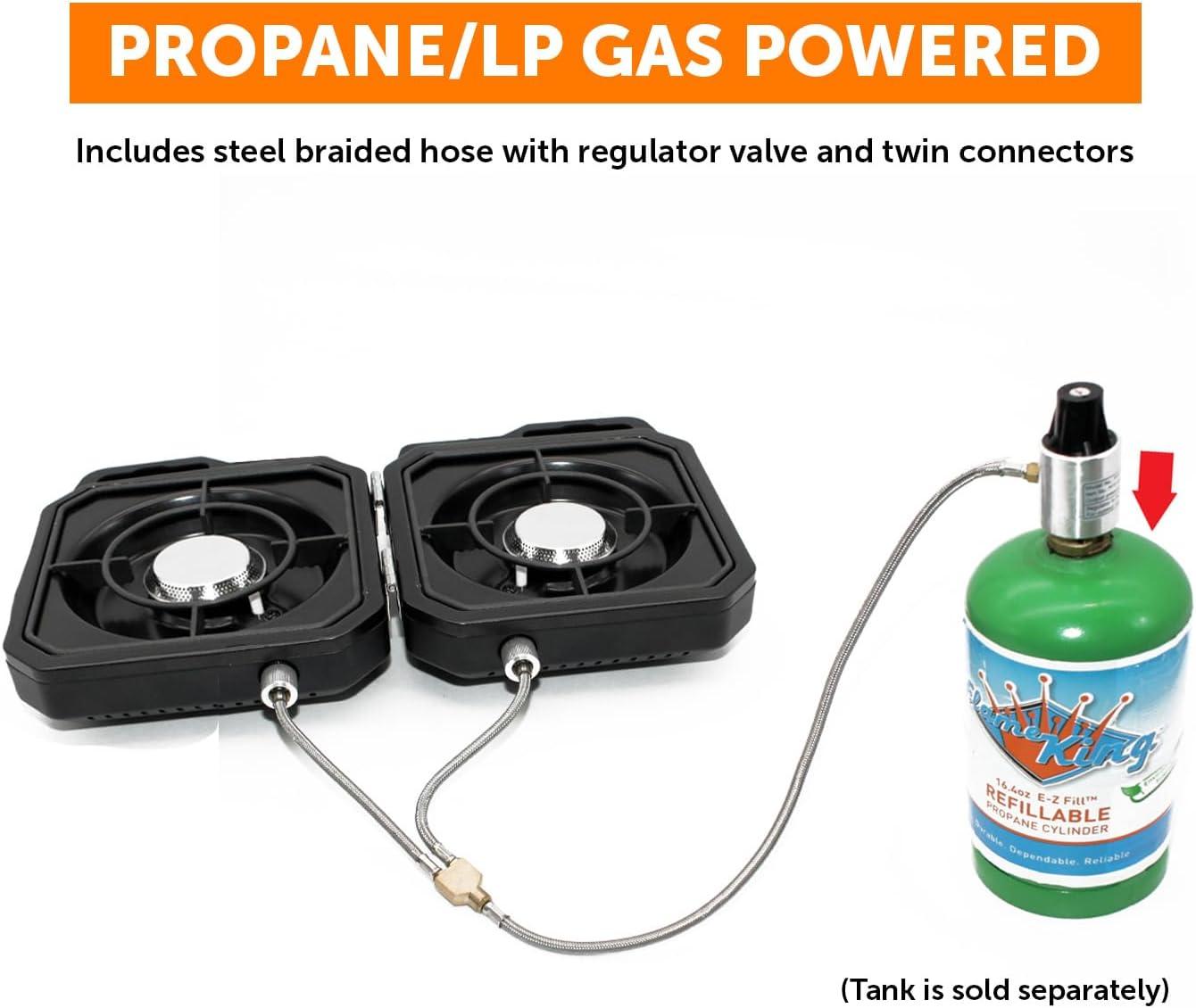 PROPANE/LP GAS POWERED: Includes hose with regulator valve and twin connectors for stable 1LB propane tank operation (tank sold separately)