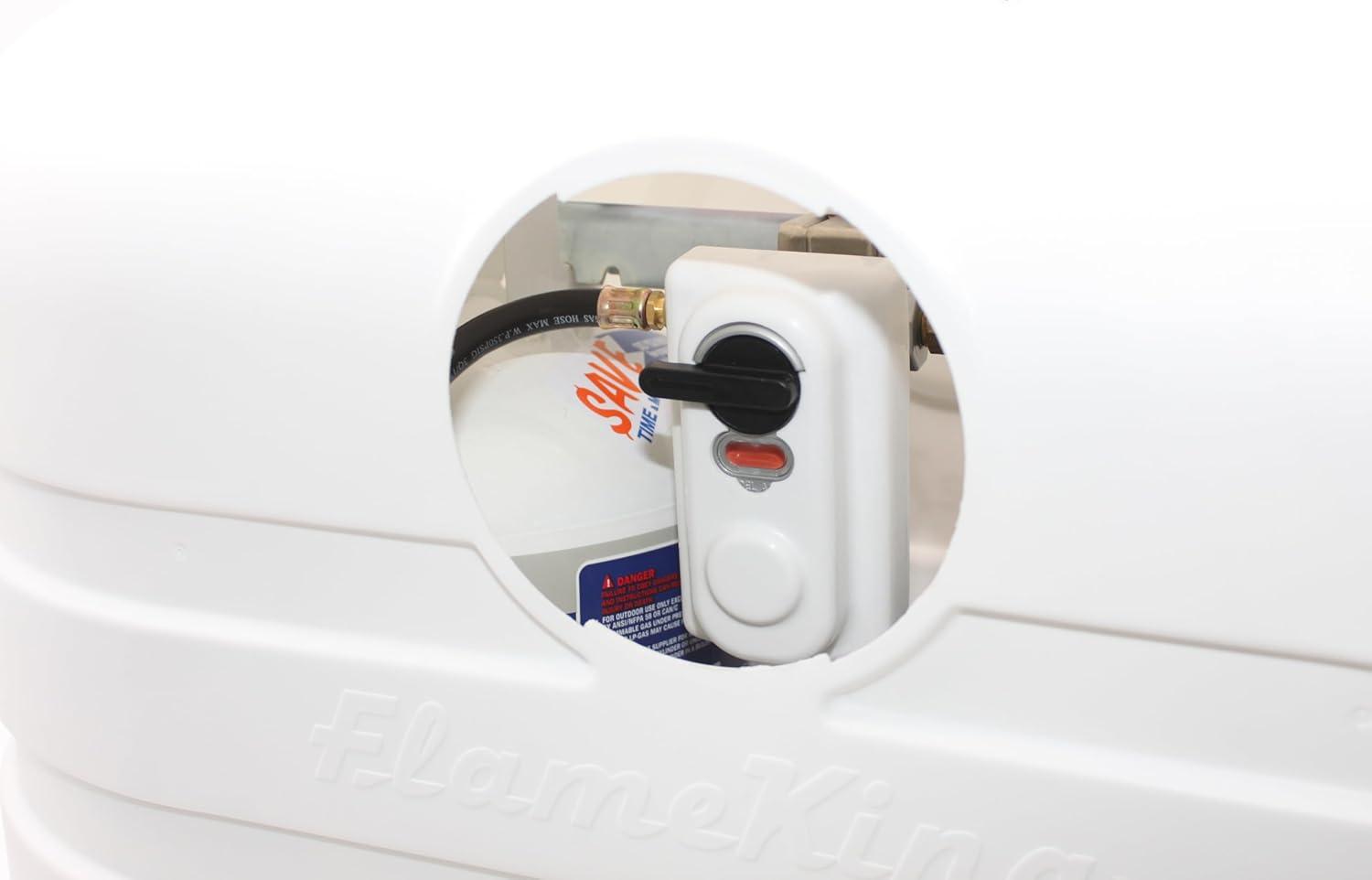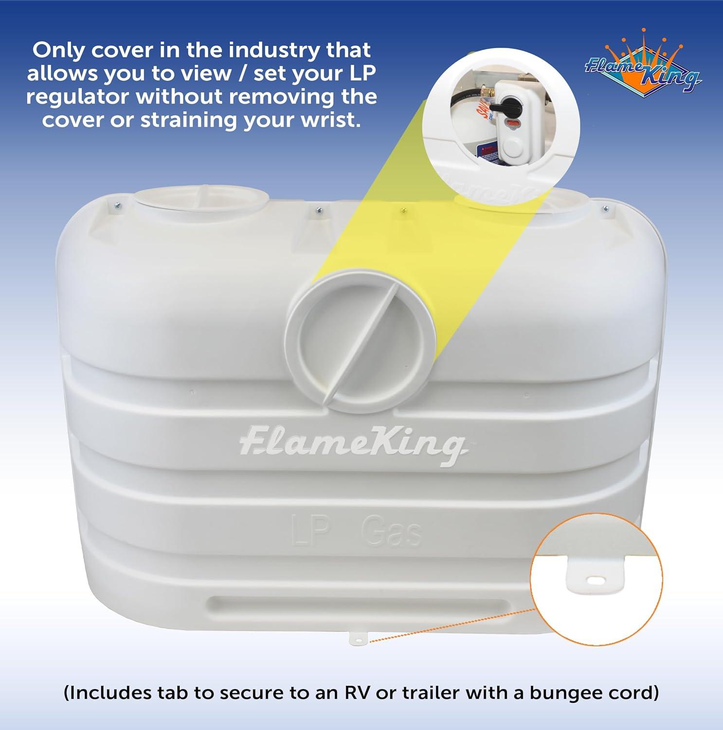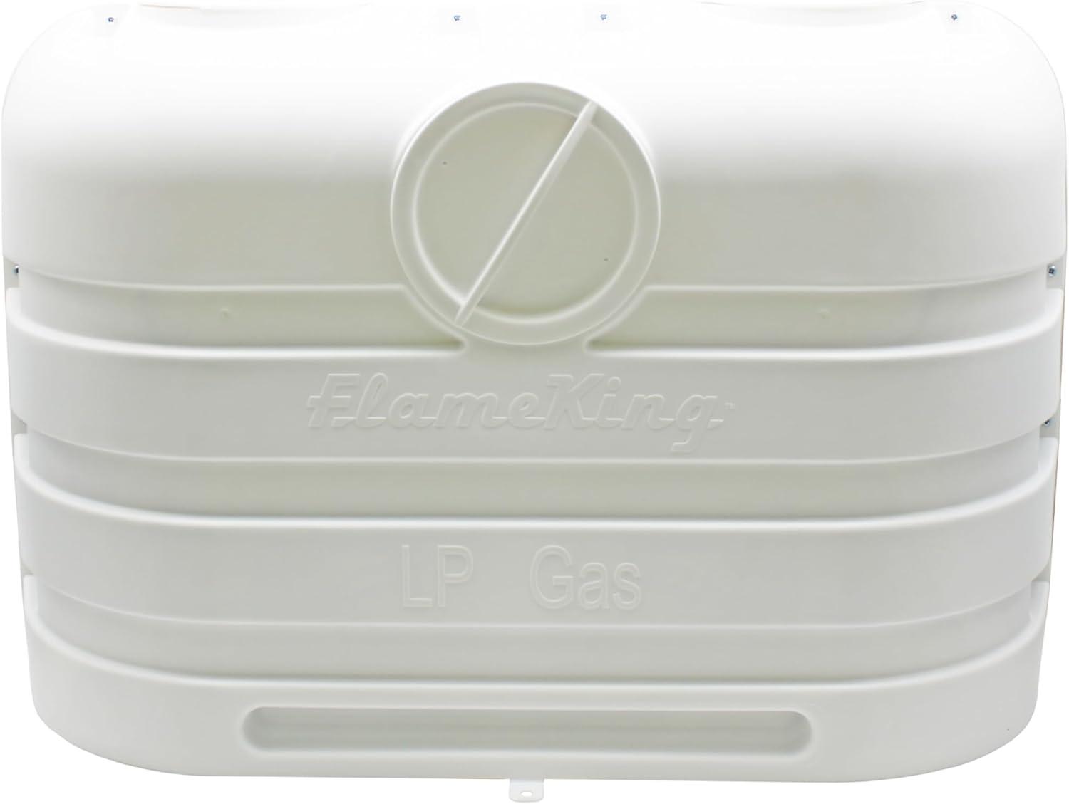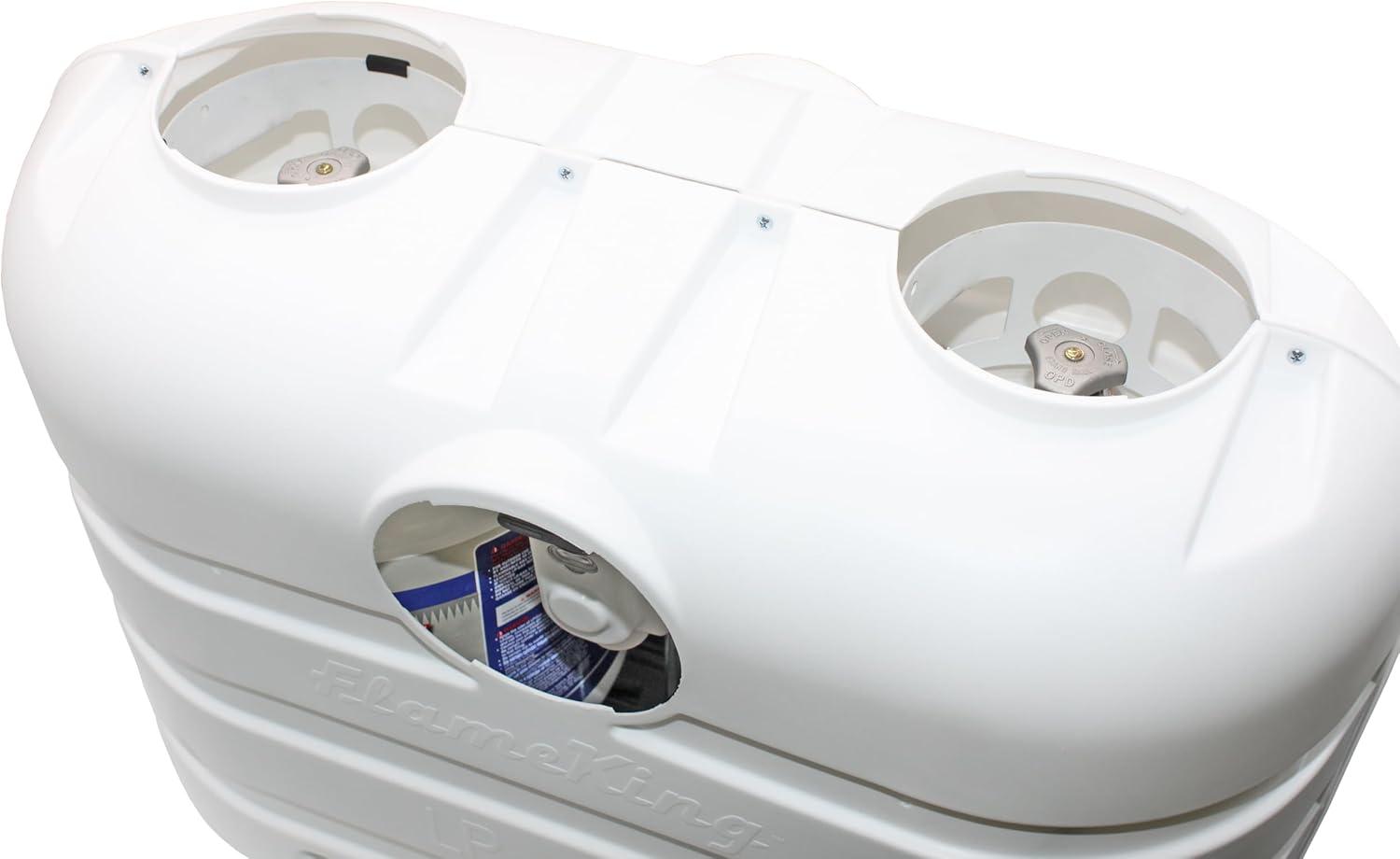 imageFlame King Dual 20LB LP Propane Tank Light Plastic Heavy Duty Cover for RV Travel Trailer Camper  WhiteWhite Propane Tank Cover