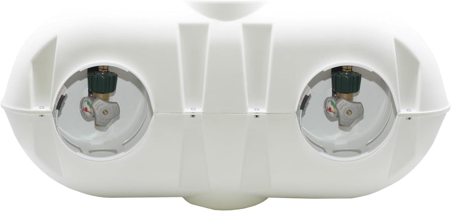 Flame King Dual 20LB LP Propane Tank Light Plastic Heavy Duty Cover for RV, Travel Trailer, Camper - White(White Propane Tank Cover)