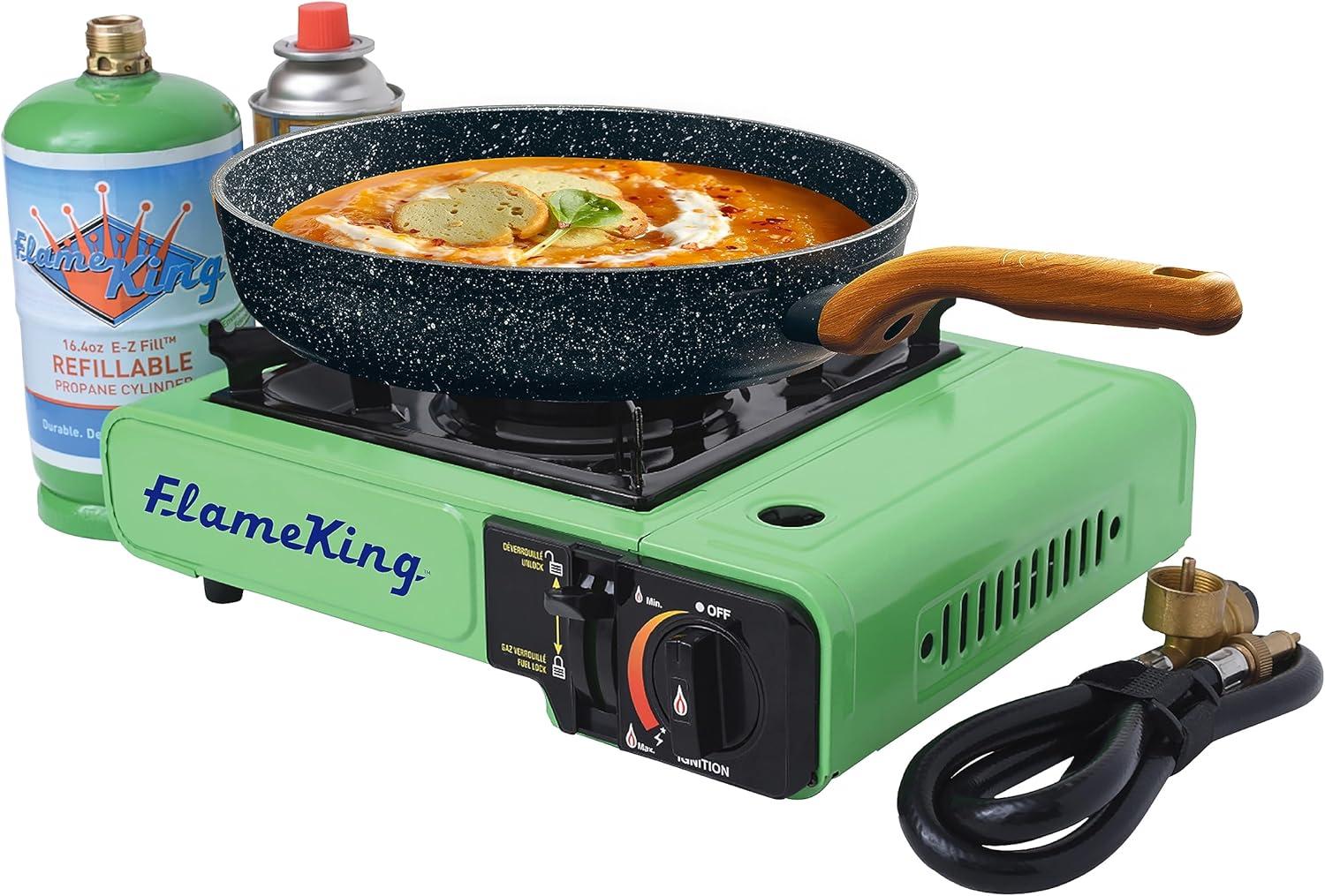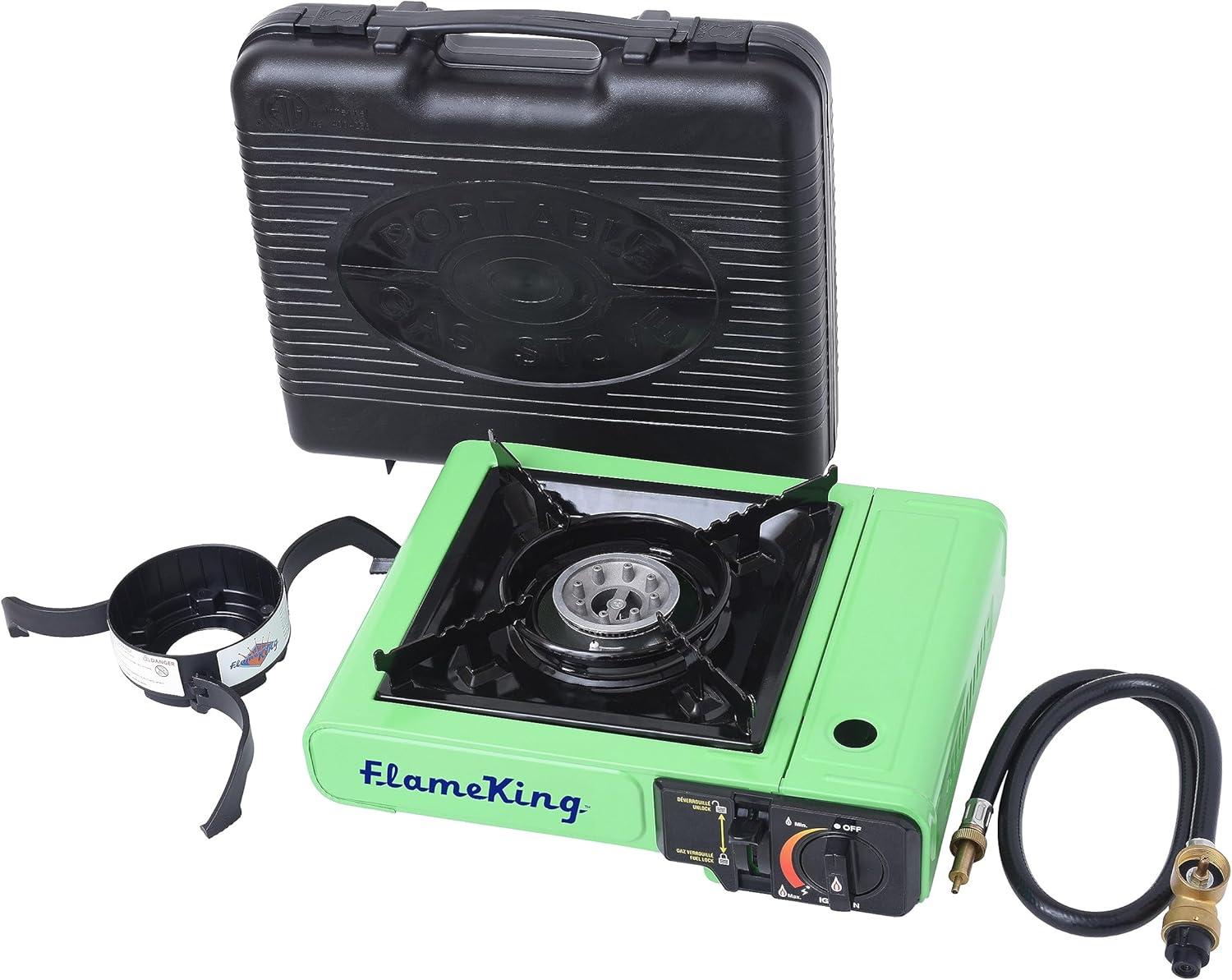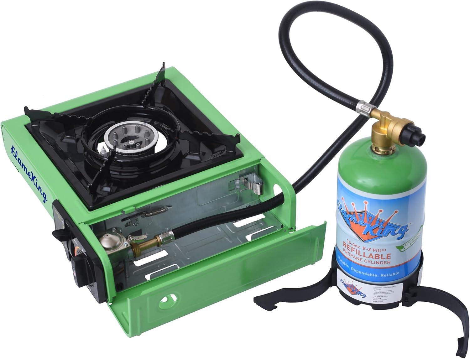 ITEMS INCLUDED: Camp stove, 34-inch propane regulator hose, durable carrying case, propane tank stand
