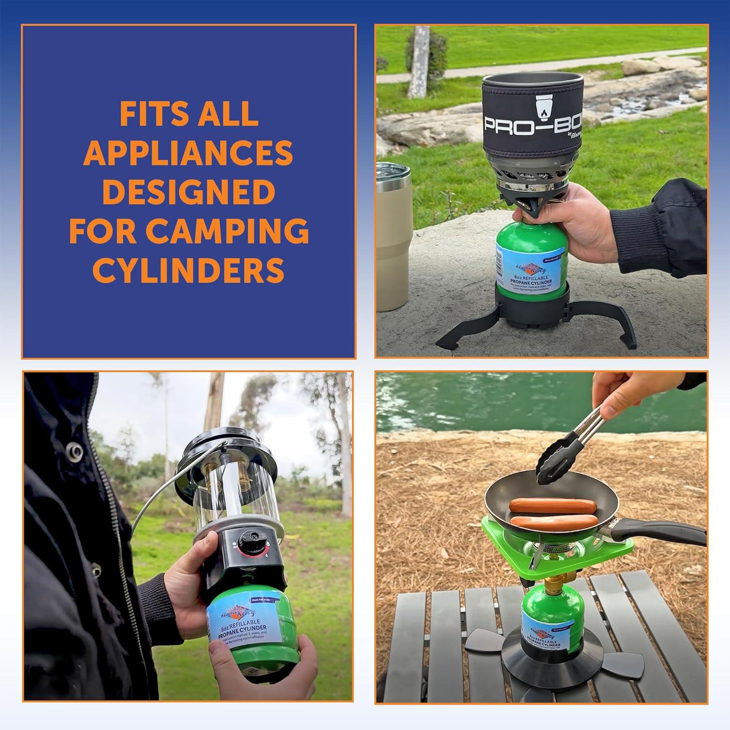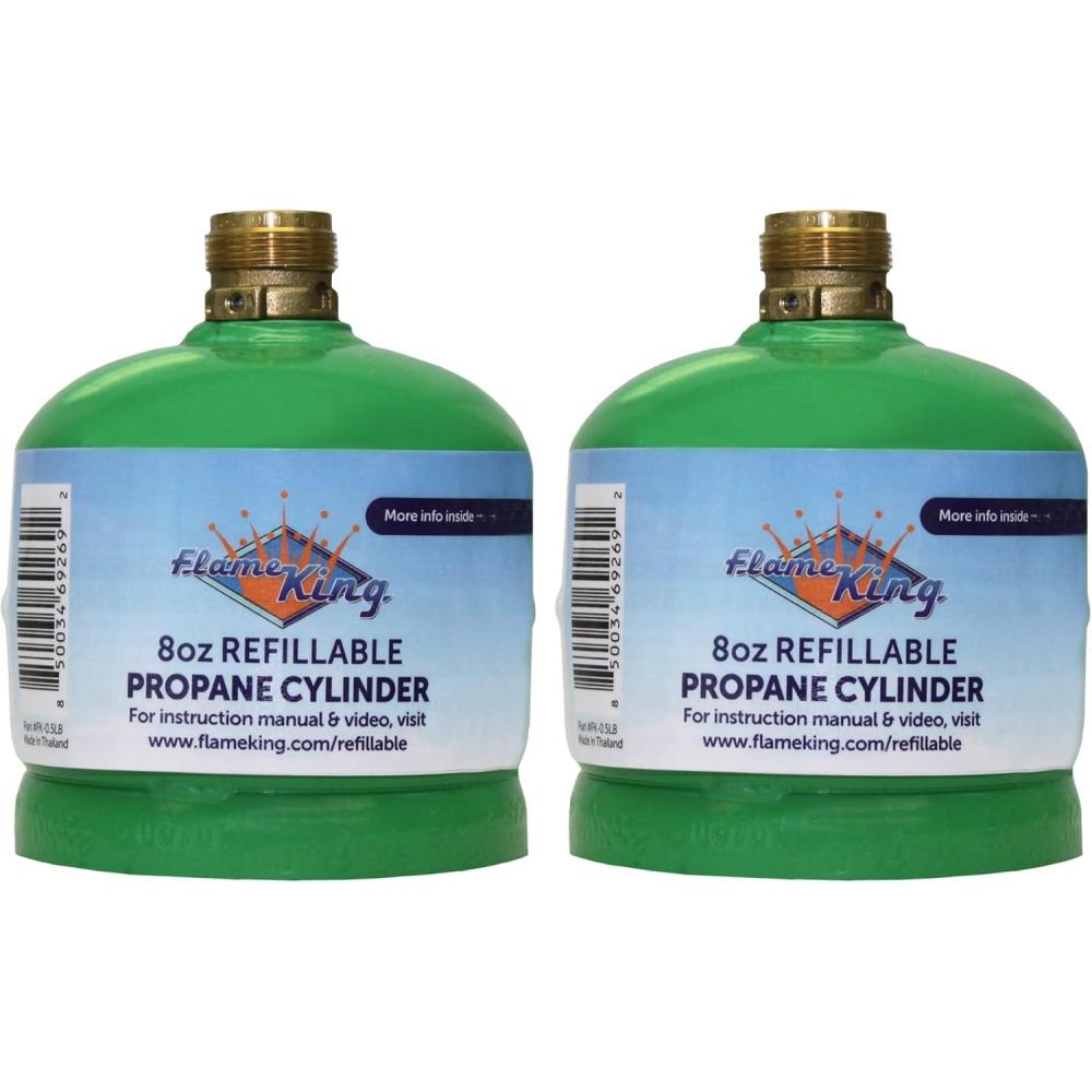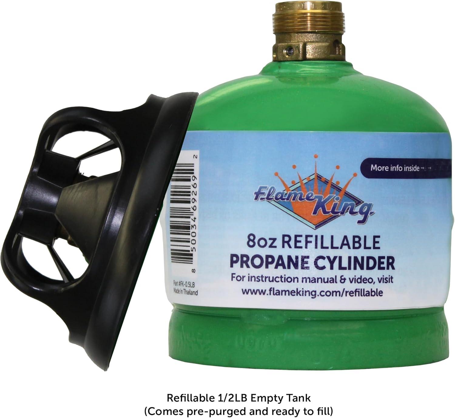 SAVE MONEY, REDUCE WASTE: Stop wasting money on disposable tanks and start saving money with our reusable, safely, and easily refillable propane cylinders; Keep disposable propane tanks out of the environment by using the Flame King 1/2Lb refillable cylinders