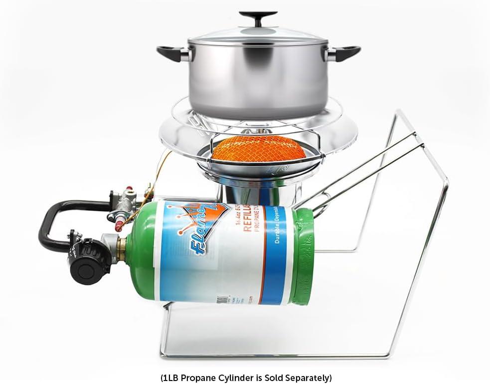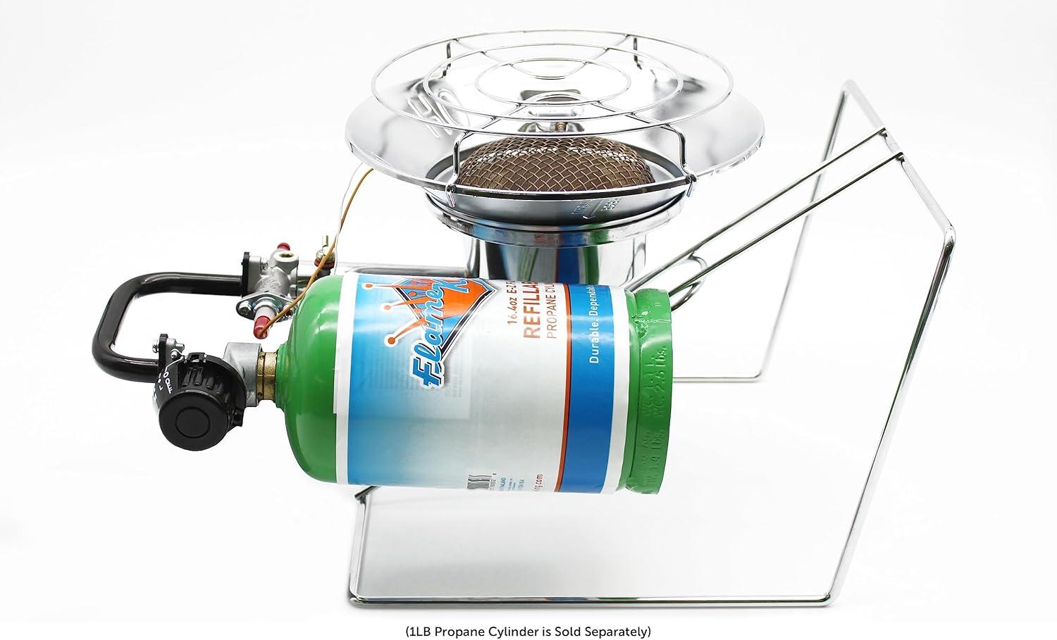 COMPACT, DURABLE & LIGHTWEIGHT: Easy to set-up with the metal stand (included) and connect to a 1LB cylinder (sold separately); 1-Year Manufacturer's Defect Warranty