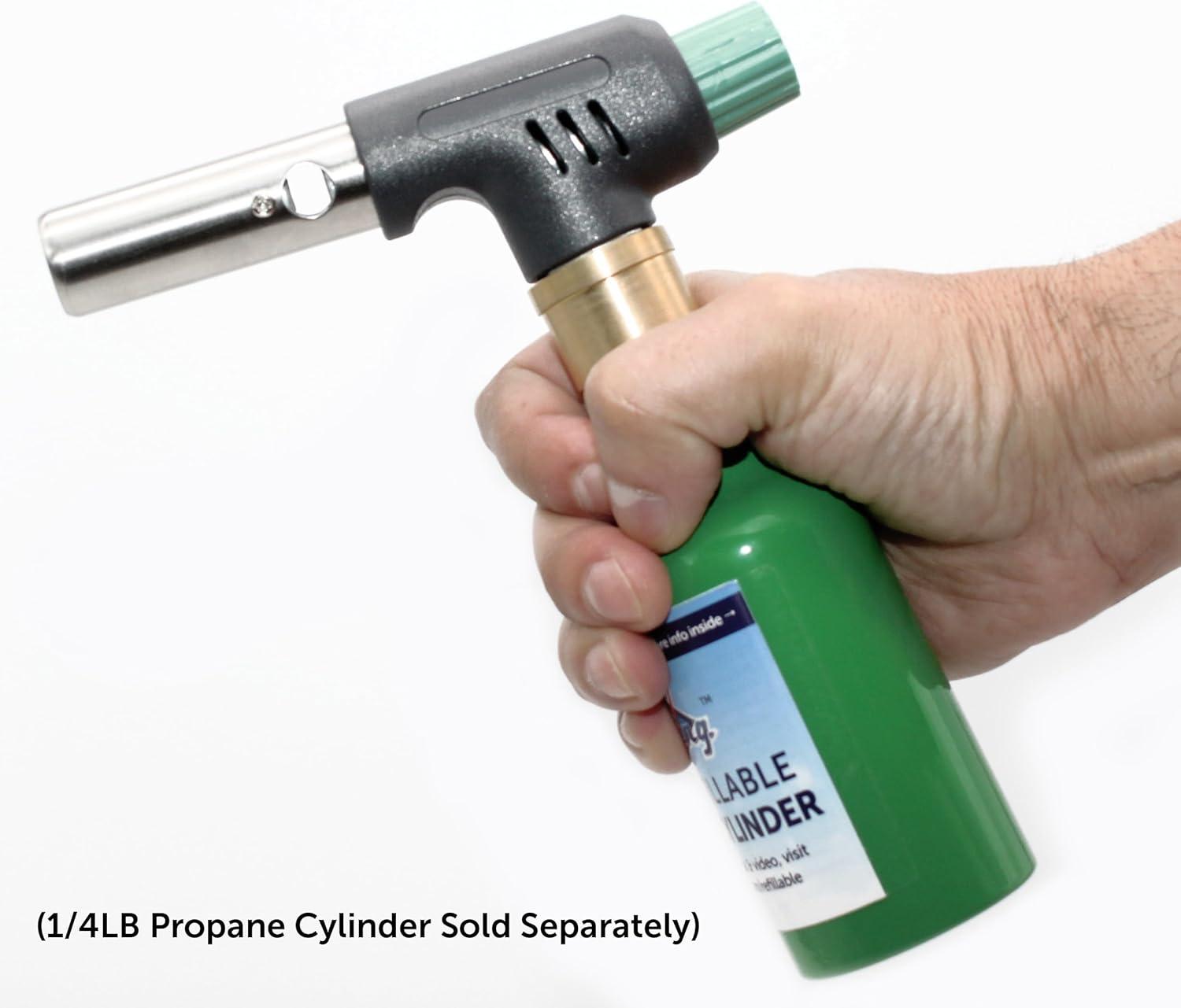 MINI PROPANE TORCH – the small size also makes it a great kitchen buddy for caramelizing sugar, searing sous vide steaks, melting cheese, roasting bell peppers, glazing a baked ham, and toasting breadcrumbs.
