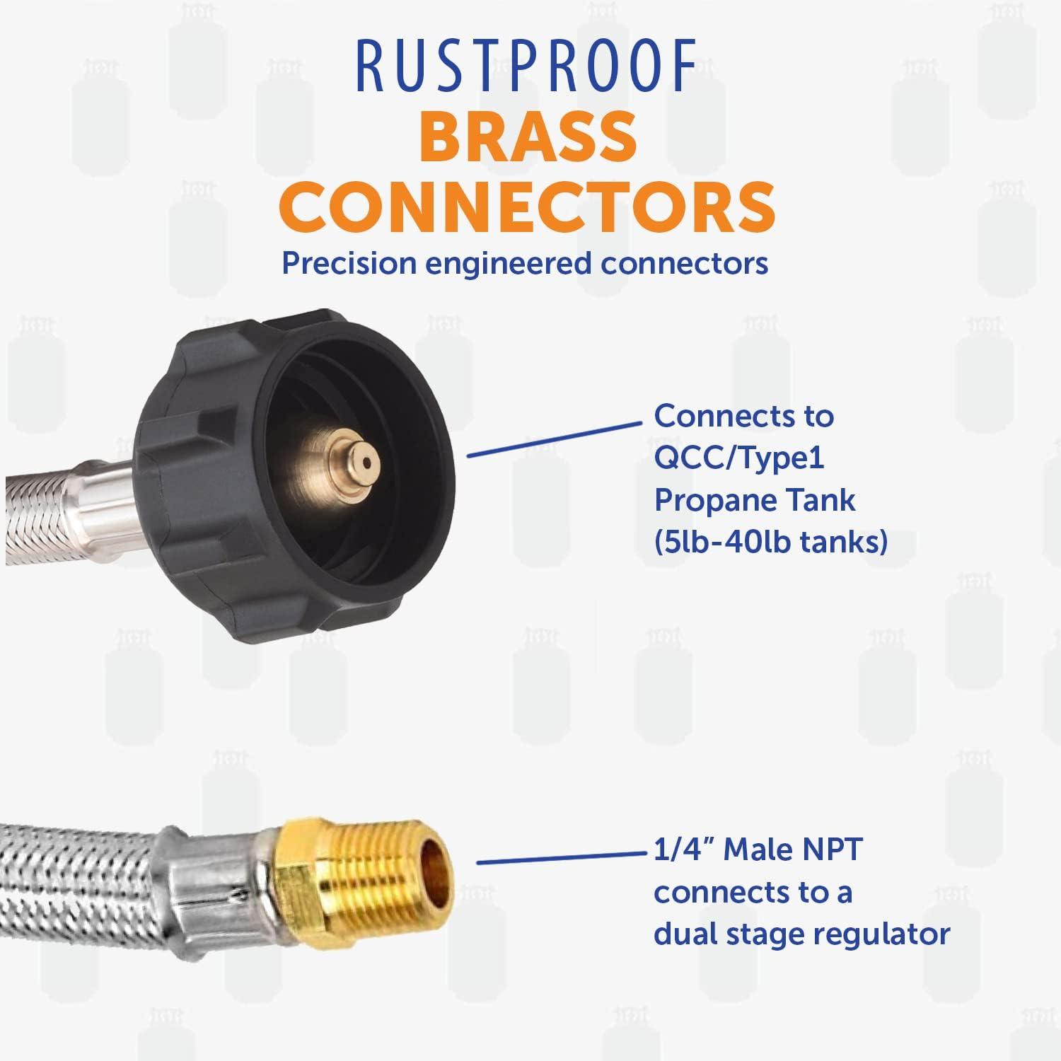 Connects propane cylinder to RV or trailer propane regulator