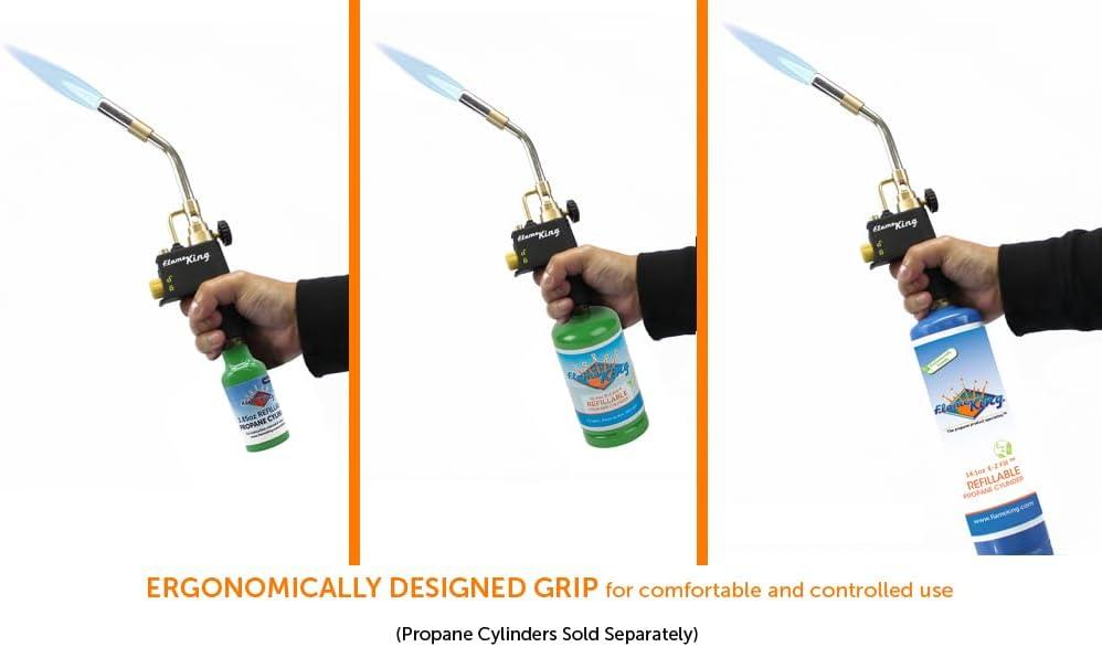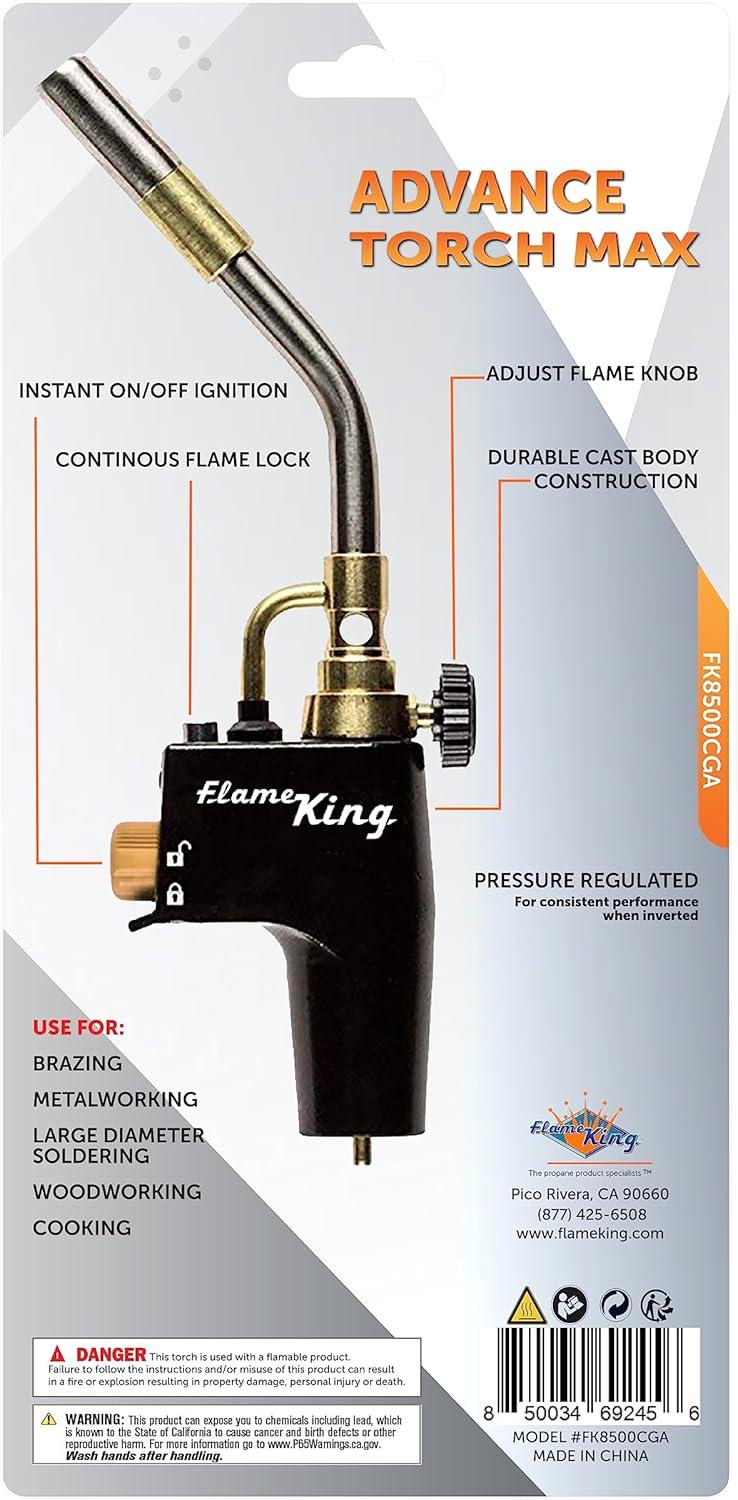 Flame King FK8500CGA High Intensity Propane Torch Head for Soldering, Brazing, Plumbing, Lighting Charcoal/Fire Pits, Compatible with 1LB Cylinders, MAPP, and MAP-PRO