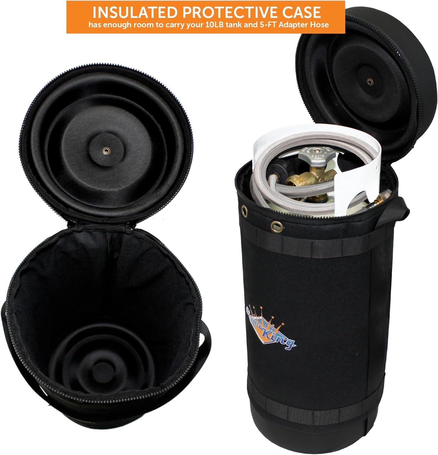 Flame King Gas Hauler Pro Kit – Insulated Protective Carry Case, 10LB Propane Tank and 5-FT Adapter Hose for Camping and Outdoor Adventures