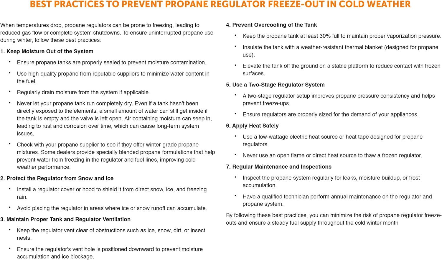 Pairs well with our 48-inch thermoplastic hose; regulator is factory set at 11WC (water column)