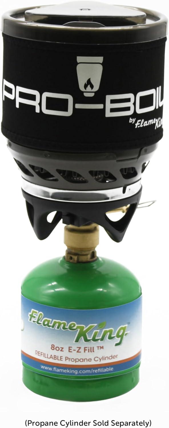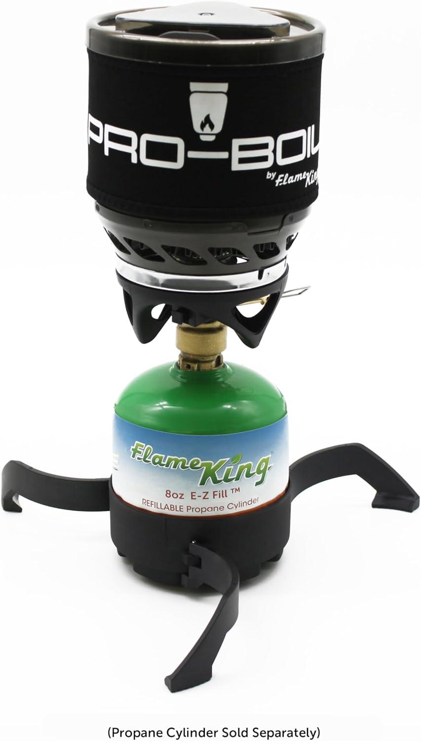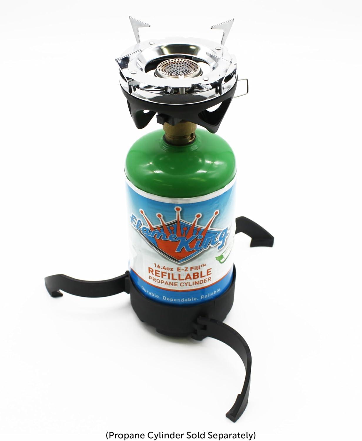 COMPATIBILITY: This integrated stove system is compatible with small propane tanks like the Flame King 1/2LB and 1LB propane canisters; it comes with a cylinder stand for the stability of your canister.