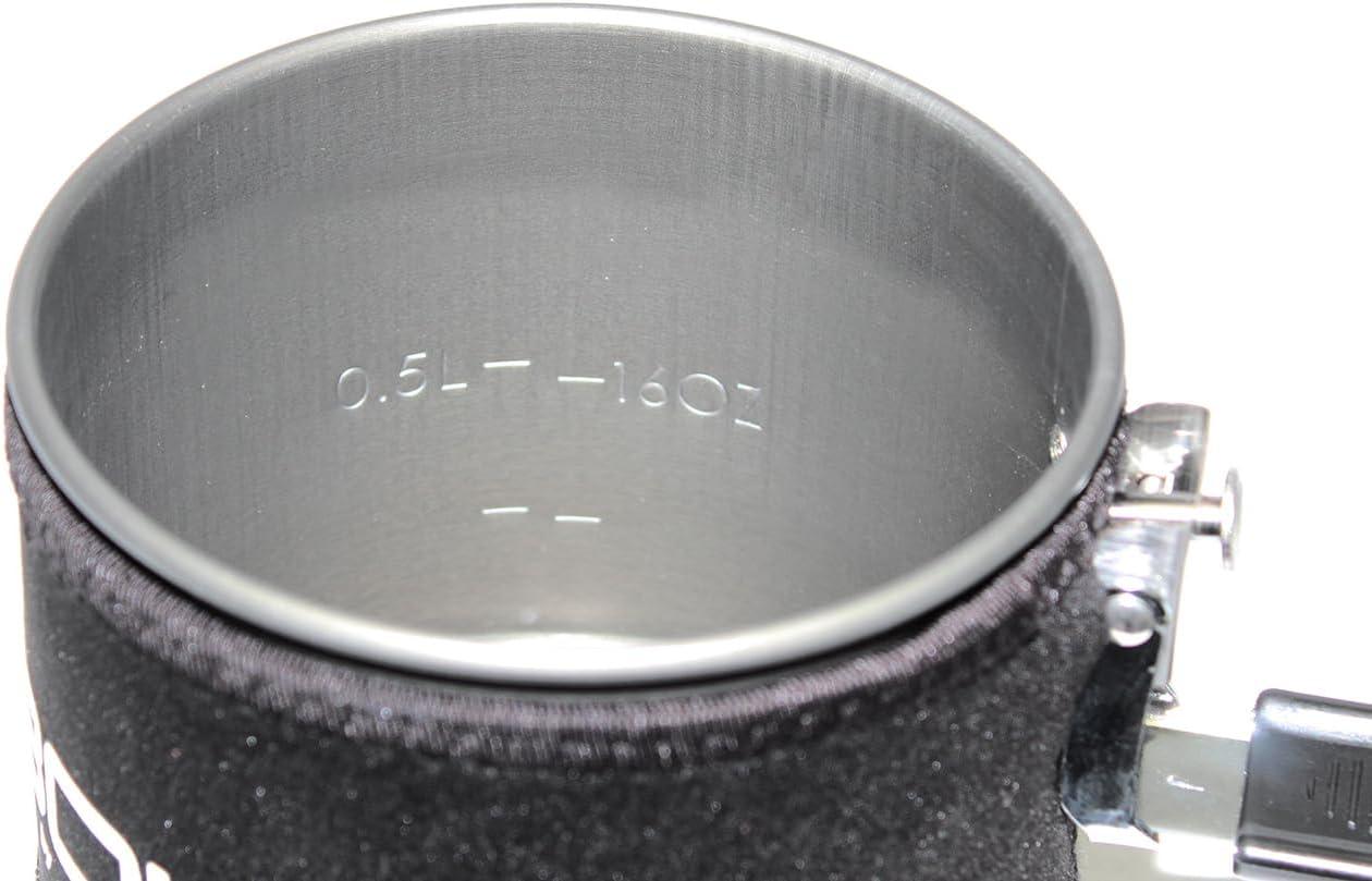 ALL-IN-ONE COOKING SYSTEM includes a burner and a 1-liter cooking cup with an insulating cozy outer sleeve, which helps in heat retention and prevents burns, while the bottom cup doubles as a measuring cup and a bowl
