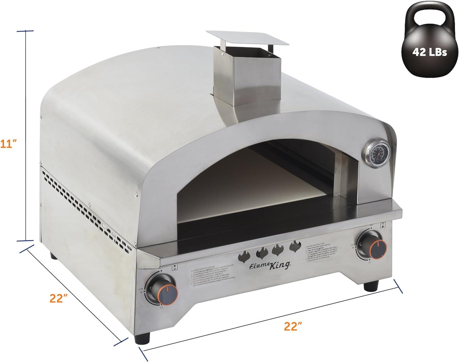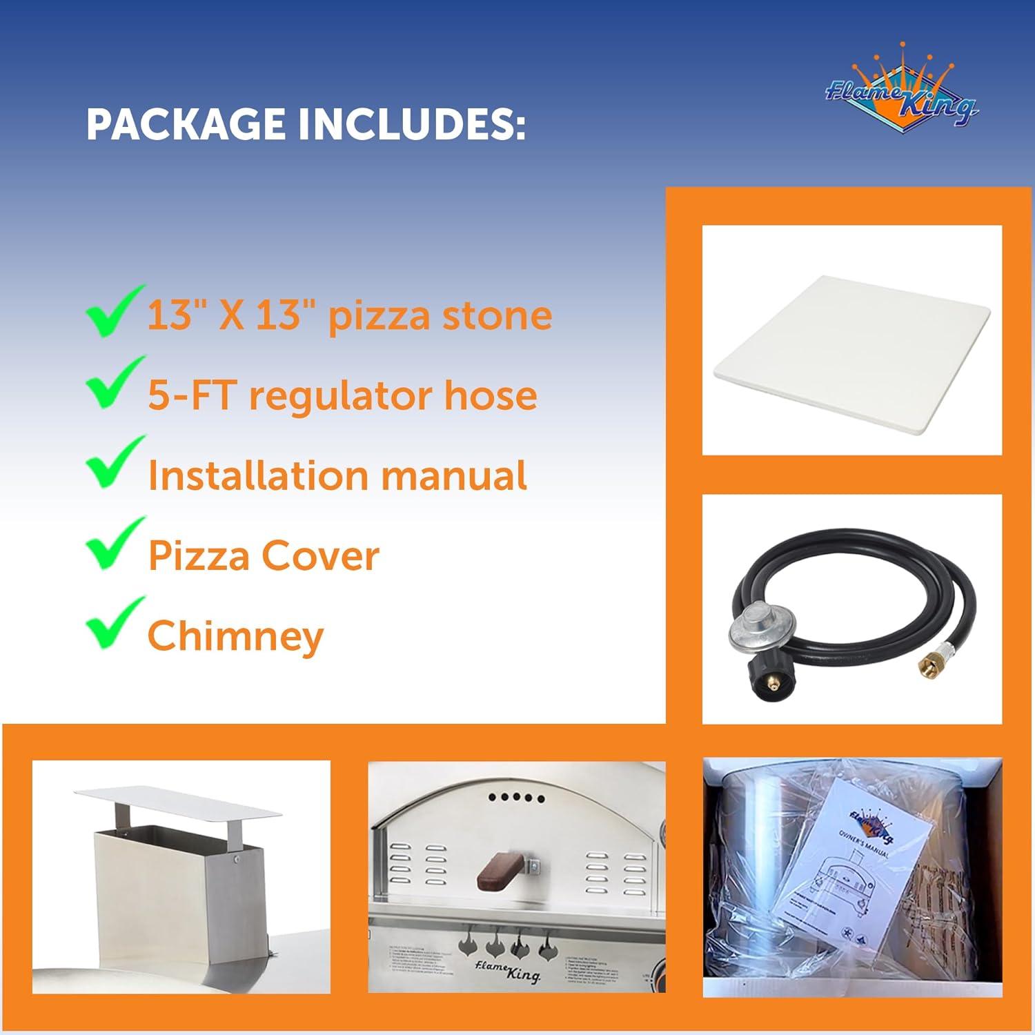ALSO INCLUDES: 5 feet propane tank hose with CSA safety-approved regulator, built-in thermometer, two control knobs, chimney for sufficient combustion, and installation manual