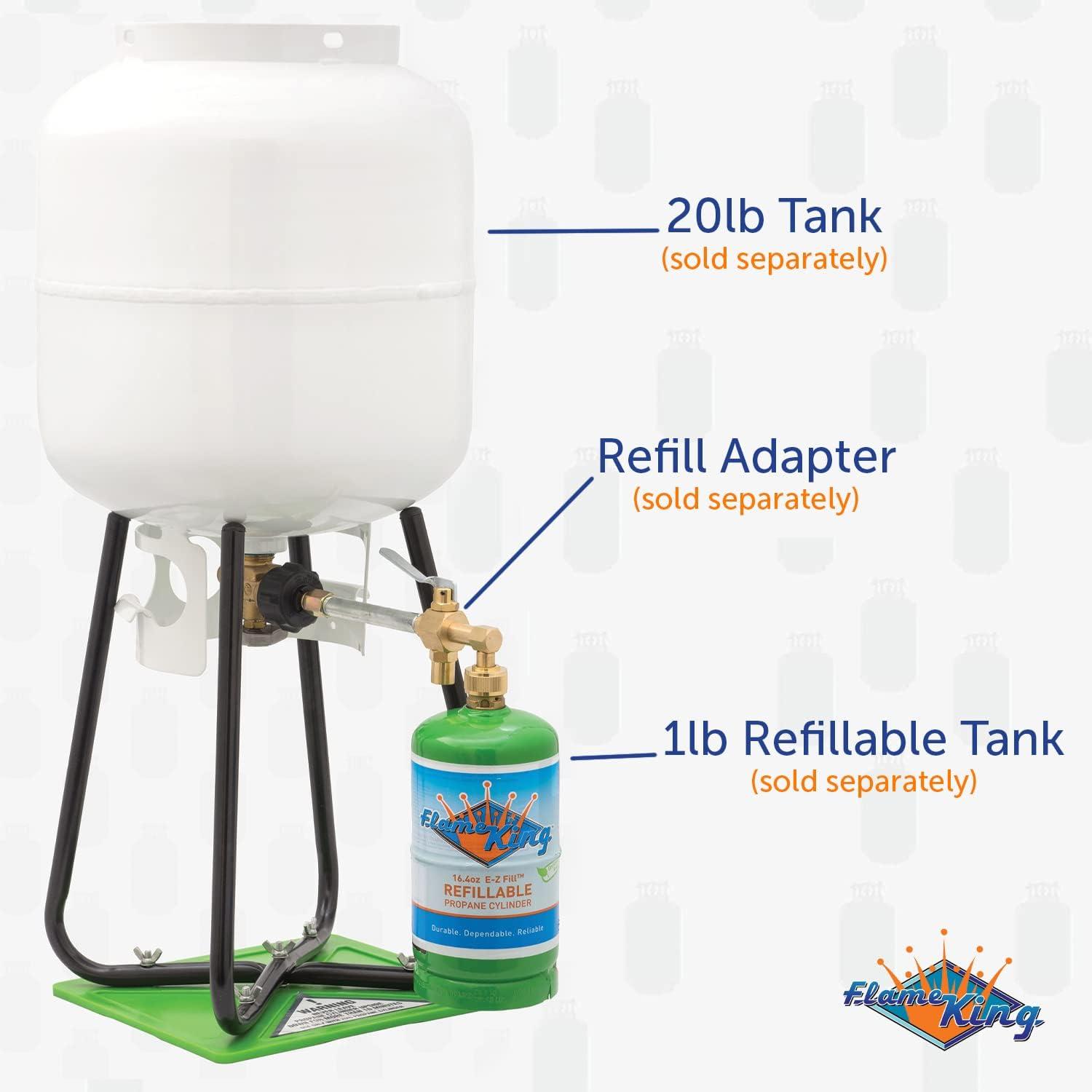 The Refill Stand by Flame King enables you to easily invert your 20 lb propane tank in order to draw the liquid propane needed to refill your 1 lb refillable propane cylinder. Refilling your 1 lb propane cylinder has never been this easy! Please note that only Flame King's 1 lb refillable cylinders (not included) are safe to refill and NOT the 1 lb throwaway camping cylinders.