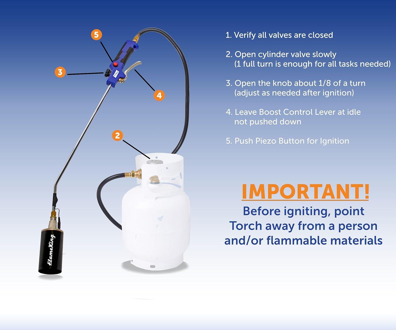 Arrives Fully Assembled: This torch is 32 inches long and is ready to use right out of the box; includes a 10-foot hose, allowing you to access hard-to-reach areas and cover more ground without constantly moving the propane cylinder