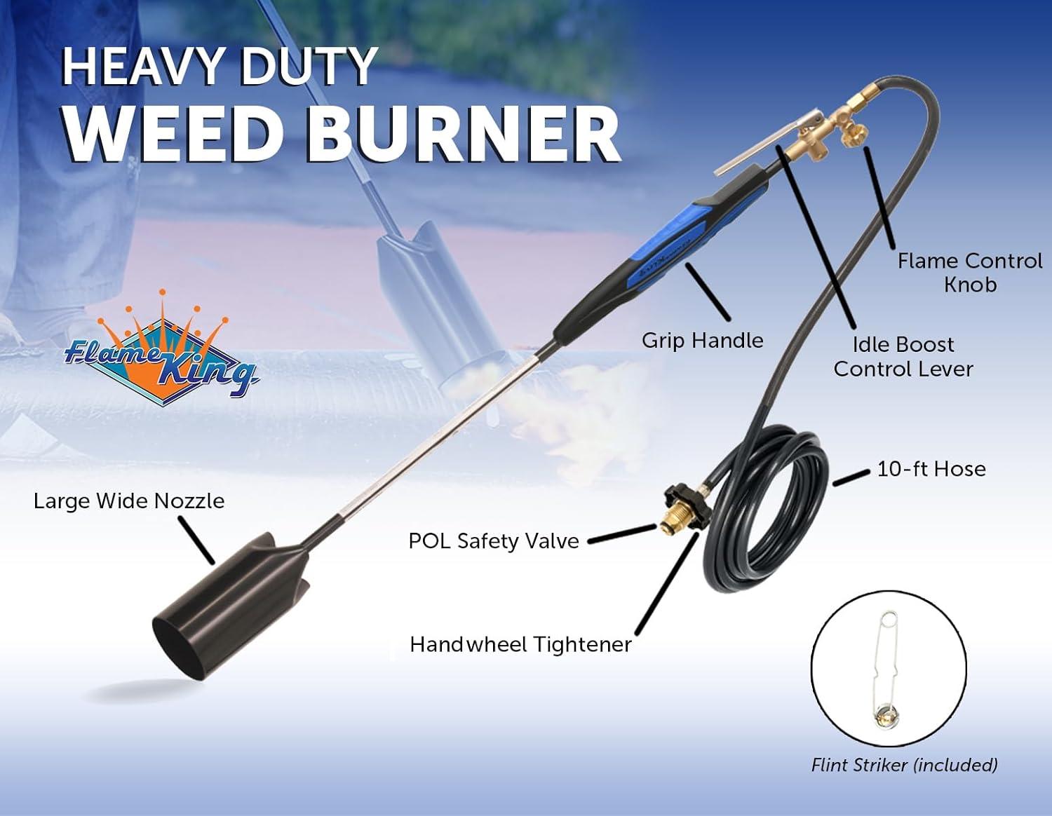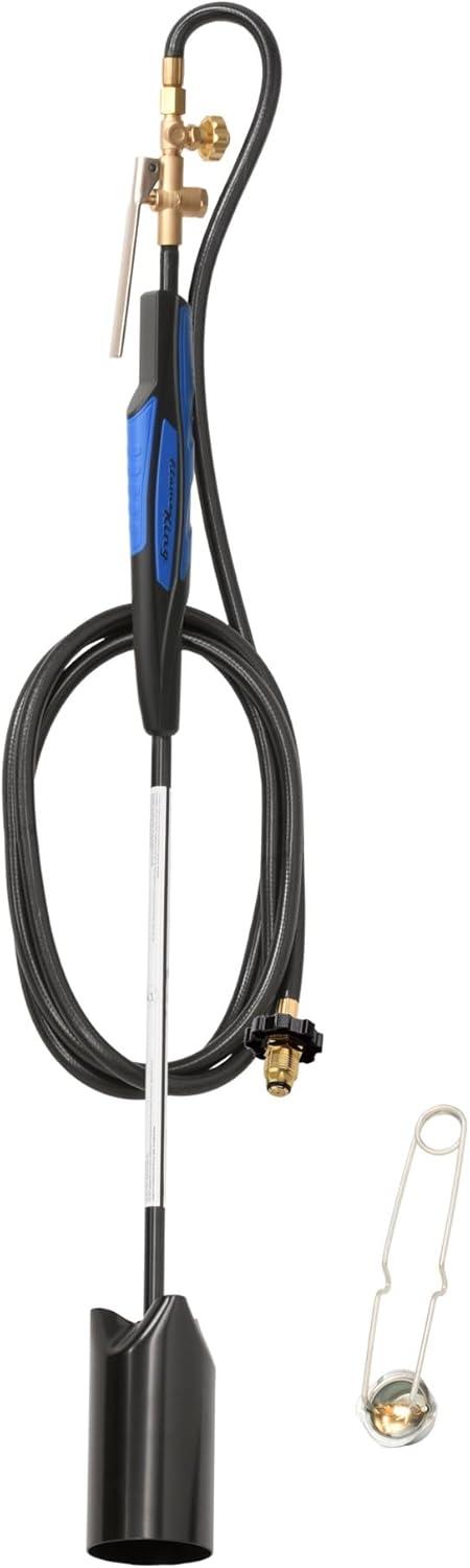 ARRIVES FULLY ASSEMBLED: This torch is 39 inches long and is ready to use right out of the box; includes a 10-foot hose, allowing you to access hard-to-reach areas and cover more ground without constantly moving the propane cylinder