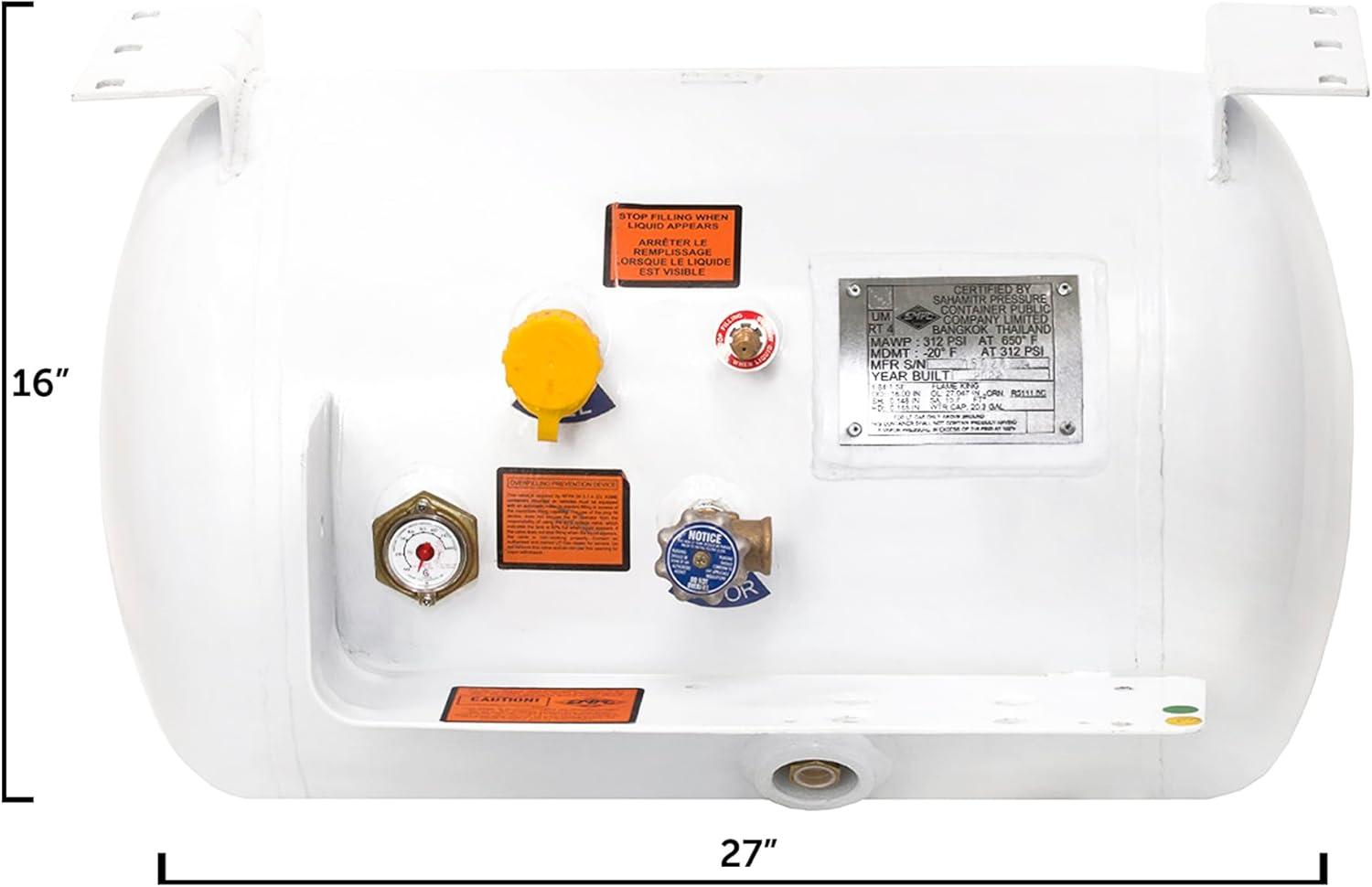 ASME-CERTIFIED 20.3 Gallon Horizontal Steel Propane Cylinder for Vans, RVs, Campers, Trailers