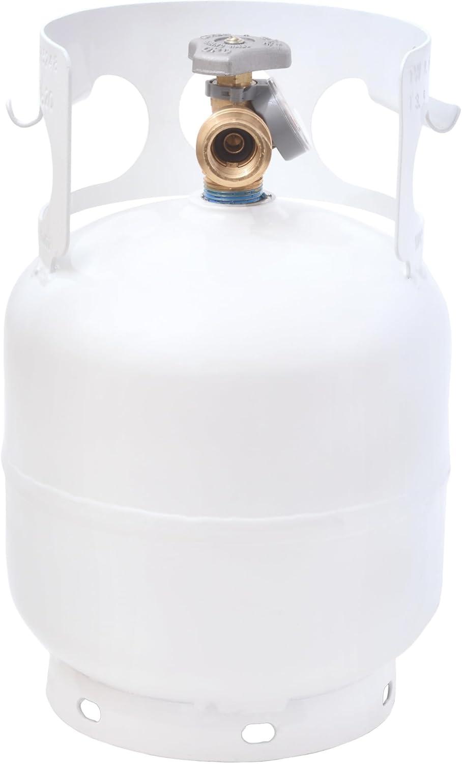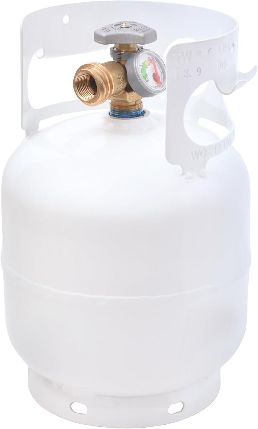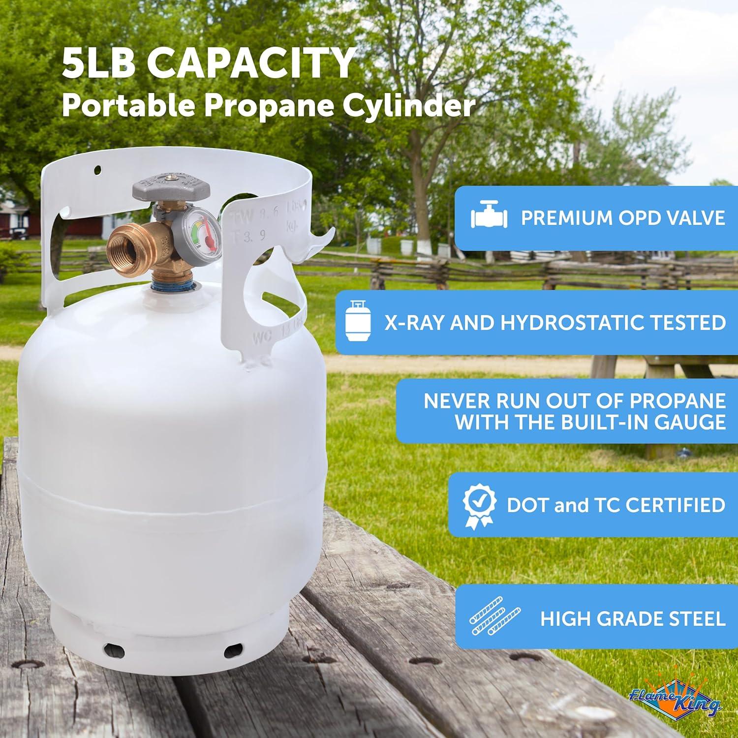 Flame King YSN5LB-GAUGE 5lb Steel Propane Tank Cylinder with Gauge and OPD Valves for Grills and BBQs, Camping, Fishing, & Outdoor Activities, White(5lb Propane Tank with Gauge)