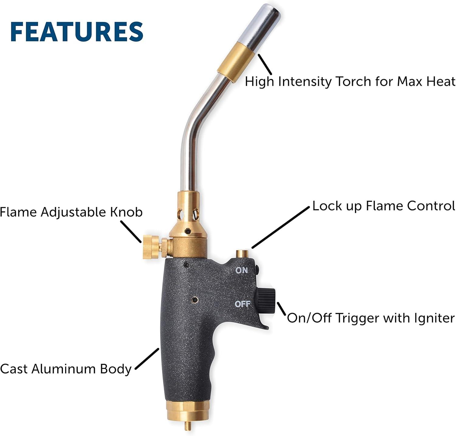 COMPATIBILITY: Works with popular fuel gases – standard 1lb Propane cylinders, MAPP, and MAP-PRO