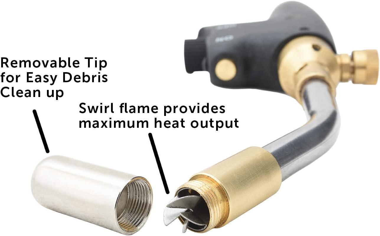 HIGH-INTENSITY TORCH FOR MAX HEAT – Ultra swirl flame provides maximum heat of 13,000 BTU output for a faster and more efficient wide range of jobs including large diameter soldering, light welding, metal works, plumbing, woodworking, heat treating, and brazing; also used as a fire starter, charcoal/fire pit lighting, searing meat, and many more